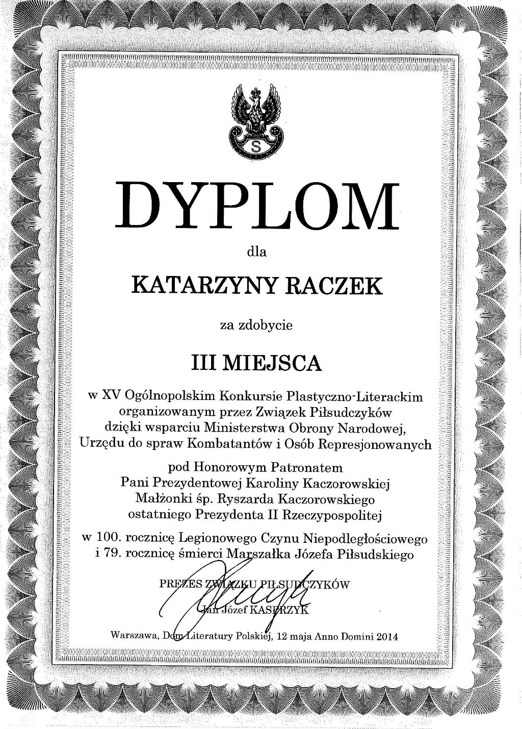 Dnia 12 maja 2014 r. w Warszawie odbyła się uroczystość zakończenia XV Ogólnopolskiego Konkursu Plastyczno-Literackiego poświęconego Marszałkowi Józefowi Piłsudskiemu i Legionom Polskim.