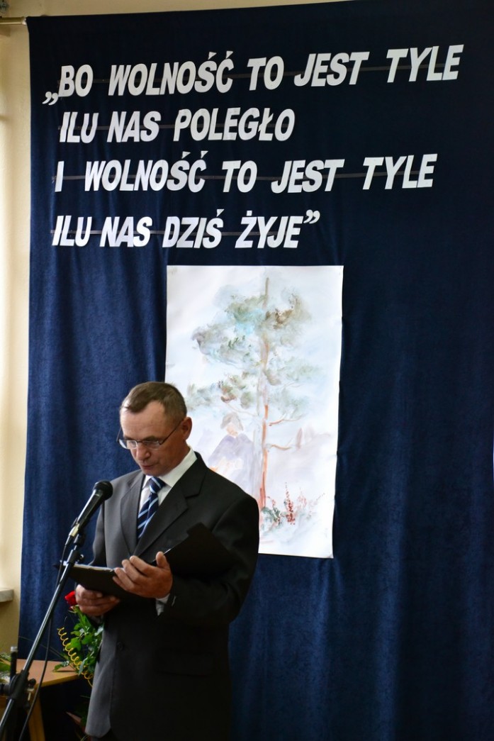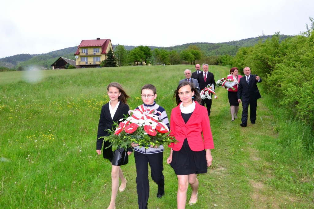 Następnie delegacja uczniów i nauczycieli naszej Szkoły wraz z Panem posłem i radnymi udała się z kwiatami pod pomnik upamiętniający zamordowanych Polaków. Wiązankę dla ofiar złożyła także delegacja młodzieży z Zespołu Szkół nr 1 im. Jana Pawła II w Męcinie.