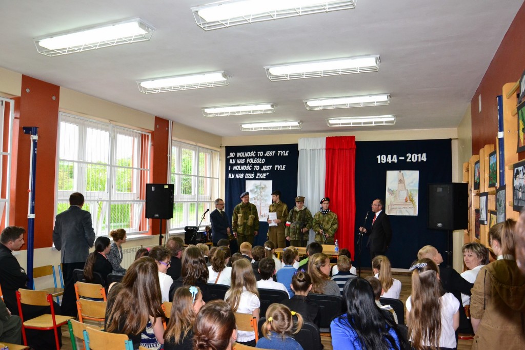 Kolejnym punktem dnia była uroczysta akademia przygotowana przez uczniów Szkoły Podstawowej pod opieką Pani Ewy Jabłońskiej i Pani Małgorzaty Karabin. W programie słowno-muzycznym uczniowie przypomnieli uczestnikom uroczystości najważniejsze fakty z okresu wojennego oraz oddali hołd minutą ciszy wszystkim ofiarom II wojny światowej.