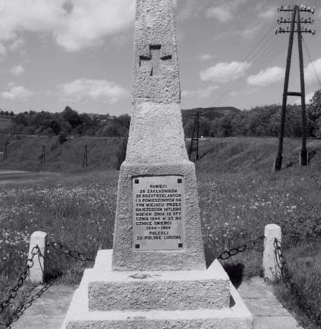 Na zdjęciu: Pomnik upamiętniający miejsce egzekucji przez hitlerowców 28 zakładników w dniu 12 stycznia 1944 roku w Kłodnem.