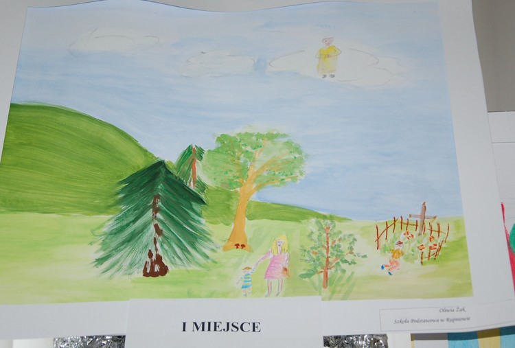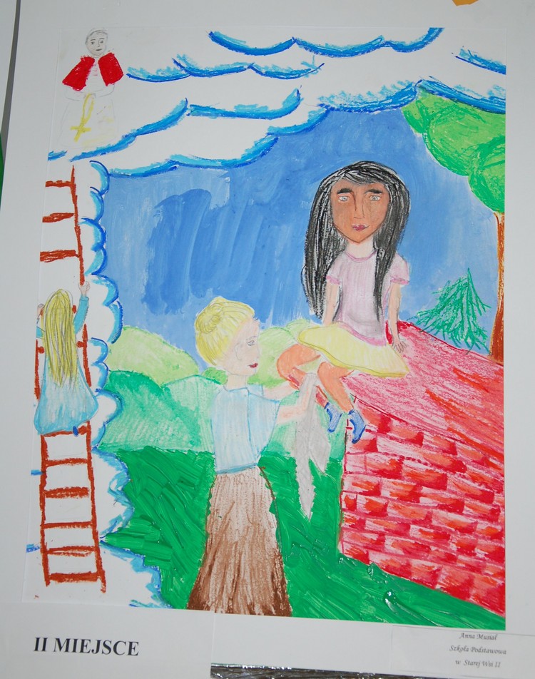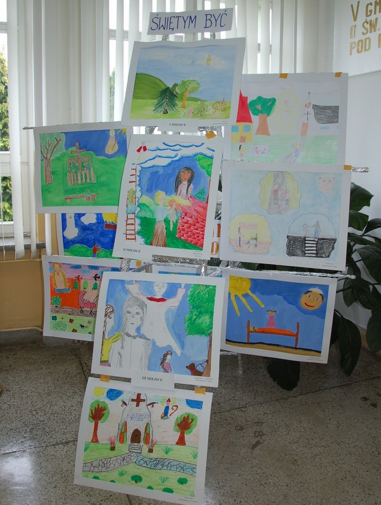 Celem konkursu plastycznego była integracja uczniów klas IV-VI poprzez wspólne działania twórcze. Każdy z uczestników wykonał pracę na temat „Taki duży, taki mały, może świętym być…” – nasza droga do nieba. Wszystkie dziecięce obrazki zostały umieszczone na drabinie Jakubowej symbolizującej ludzkie dążenie do świętości. W zmaganiach konkursowych najlepsza okazała się Oliwia Żak (SP w Rupniowie), II miejsce zajęła Anna Musiał (SP w Starej Wsi II), zaś na III miejscu uplasowała się Zuzanna Szewczyk (SP w Mordarce).