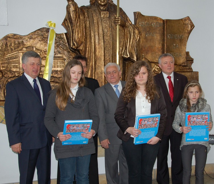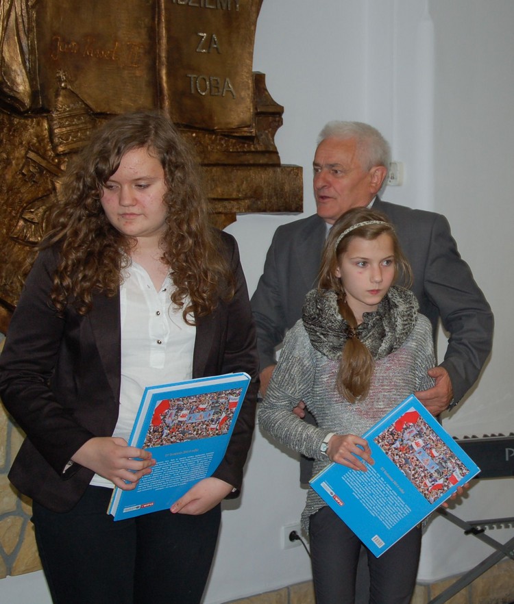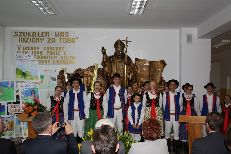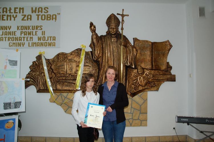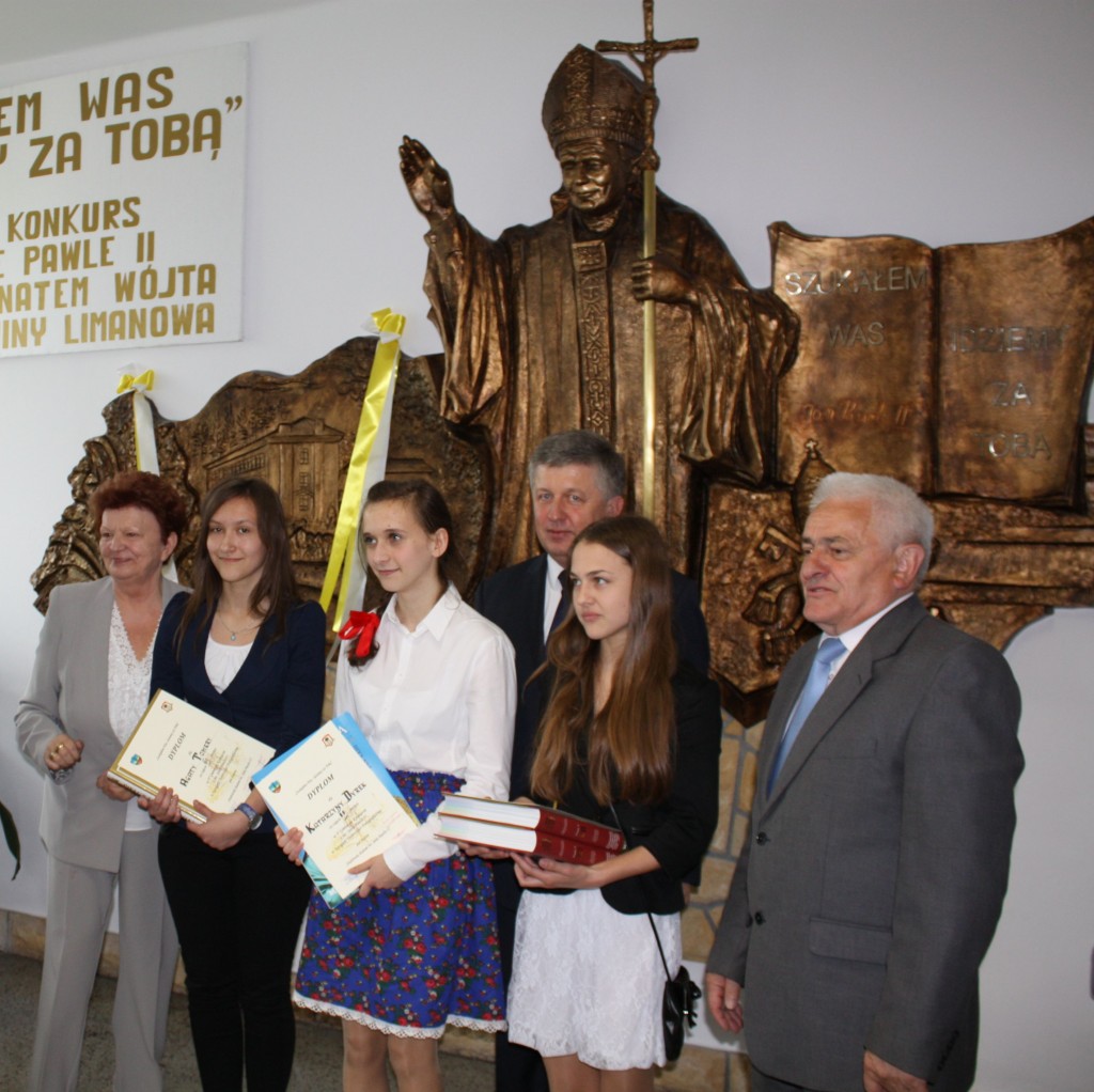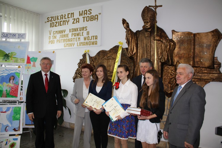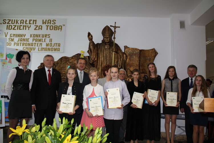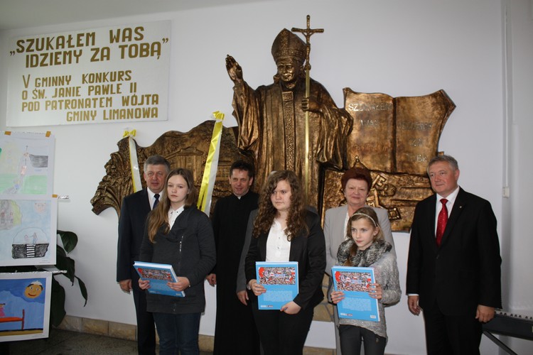 w poszczególnych kategoriach wiekowych i tematycznych unikatowe albumy o św. Janie Pawle II. Rozdania nagród dokonali zaproszeni goście: Wójt Gminy Limanowa Władysław Pazdan – główny sponsor konkursu, Poseł na Sejm RP Wiesław Janczyk, Przewodniczący Rady Gminy Limanowa Józef Oleksy, Dyrektor Gminnego Zespołu Obsługi Szkół Edyta Król, ksiądz proboszcz Antoni Piś oraz przedstawiciel Rady Rodziców Edward Smoleń.