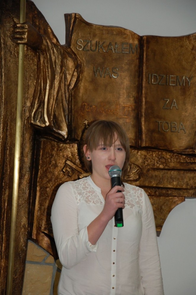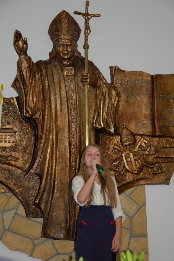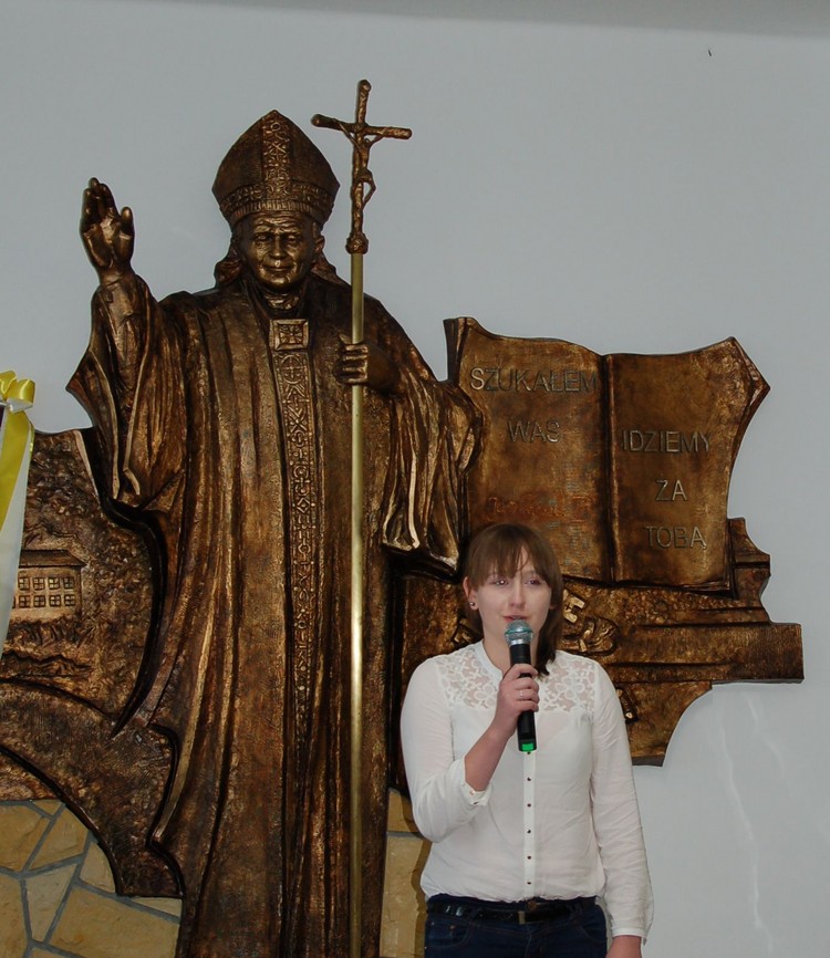 W konkursie wokalnym natomiast uczniowie prezentowali utwory związane z osobą św. Jana Pawła II. W klasach IV – VI szkoły podstawowej I miejsce zdobyła Gabriela Filipiak (SP w Starej Wsi II), II miejsce – Izabela Chowaniec (SP w Kłodnem), natomiast na miejscu III znalazła się Monika Setlak (SP w Starej Wsi I). Najlepszą wokalistką wśród uczniów gimnazjum okazała się Magdalena Mól (Publiczne Gimnazjum w Starej Wsi I), II miejsce przyznano – Aleksandrze Woźniak (Publiczne Gimnazjum w Łososinie Dolnej), a miejsce III ex aequo zajęły Ilona Kaleta (Publiczne Gimnazjum w Sadku – Kostrzy) oraz Katarzyna Sławek (Publiczne Gimnazjum w Pisarzowej).