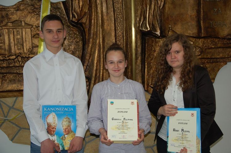 Konkurs twórczości poetyckiej, który również odbył się po raz pierwszy, przebiegał pod hasłem „Od Wadowic do Watykanu – droga Karola Wojtyły do świętości”. Uczniowie stworzyli wzruszające liryki prezentujące osobę Papieża Polaka oraz odzwierciedlające przemyślenia i odczucia związane z kanonizacją Jana Pawła II. W kategorii szkół podstawowych I miejsce zajęła Katarzyna Raczek (SP w Mordarce), II miejsce przyznano Klaudii Hebdzie (SP nr 2 w Siekierczynie), zaś na III ex aequo uplasowały się Marlena Opach (SP w Rupniowie) oraz Kinga Janik (SP w Wysokiem). Wśród gimnazjalistów natomiast najlepsza okazała się Natalia Orzeł (Publiczne Gimnazjum w Łososinie Dolnej), II miejsce zajął Michał Tokarczyk (Publiczne Gimnazjum w Starej Wsi II), zaś na III miejscu ex aequo znaleźli się Małgorzata Ptaszek (Publiczne Gimnazjum w Rupniowie) i Patryk Lupa (Publiczne Gimnazjum w Mordarce).