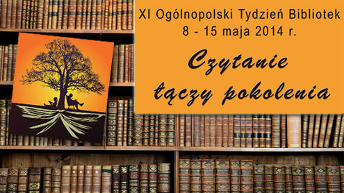 XI Ogólnopolski Tydzień Bibliotek, odbywa się pod hasłem Czytanie łączy pokolenia i nawiązuje do Roku Jubileuszu 650 lat w służbie książki, obchodzonego pod Patronatem Honorowym Prezydenta Rzeczypospolitej Polskiej Bronisława Komorowskiego. Dokument z dn. 12 maja 1364 r., wydany przez króla Kazimierza Wielkiego, ustanowił Studium Generale, czyli późniejszą Akademię Krakowską, a wśród pracowników potrzebnych dla jego funkcjonowania wymieniał stacjonariuszy, którzy organizowali wytwarzanie, udostępnianie i rozpowszechnianie kopii ksiąg rękopiśmienniczych, pełniąc tym samym role bibliotekarzy, księgarzy, wydawców. Tę datę uznaje się za początek służby książce w Polsce. Hasło Tygodnia Bibliotek 2014 nawiązuje także do ogłoszonego przez Ministerstwo Kultury i Dziedzictwa Narodowego, Narodowego Programu Rozwoju Czytelnictwa 2014-2020, którego celem jest rozwój i promocja czytelnictwa, poprawienie społecznego wizerunku książki oraz zwiększenie funduszy na zakup nowości do bibliotek.