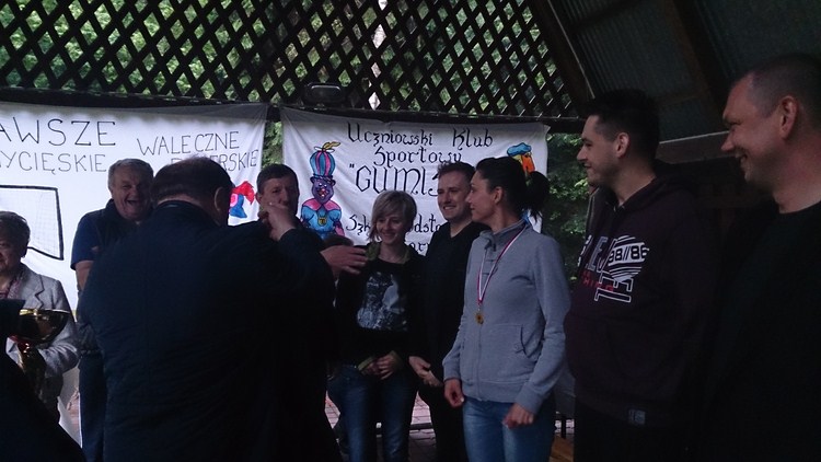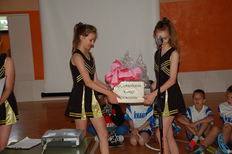 Na tym nie koniec atrakcji przygotowanych przez prezesa klubu Marię Kądziołkę, aby przybliżyć klimat Gumisiów a bardziej gumisiowego lasu uczestnicy zawodów Oldboyów w Unihokeya organizowanych od lat przez klub, walczyli w pobliżu Ośrodka „Pod Ostrą ”. Do potyczek przystąpiło sześć drużyn: Gumisie I- młodsi, Gumisie II –starsza gwardia, sponsorzy, Gminny Zespół Obsługi Szkół w Limanowej, Międzyszkolny Ośrodek Sportowy Powiatu Limanowskiego oraz Urząd Gminy Limanowa. Po zaciętej rywalizacji na podium stanęli: miejsce trzecie –Gumisie II , srebny medal i miejsce drugie GZOS Limanowa oraz zwycięscy Urząd Gminy Limanowa w składzie: Anna Pałka, Magdalena Górszczyk, Maciej Młynarczyk, Wojciech Korabik, Stanisław Piegza i Marcin Matras. Zawody były okazją podziękowania Marii Kądziołka za permanentną dwudziestoletnią determinację, poświęcenie i zaangażowanie w działalność klubu, którą wyrazili przedstawiciele władz samorządowych, sponsorzy oraz władze sportowe na czele z reprezentantami Szkolnego Związku Sportowego w Krakowie. Gumisiom życzymy nieustannych sukcesów, a prezesowi - Marii Kądziołka dalszej woli trwania przy klubie i realizacji wszelkich zamierzeń.