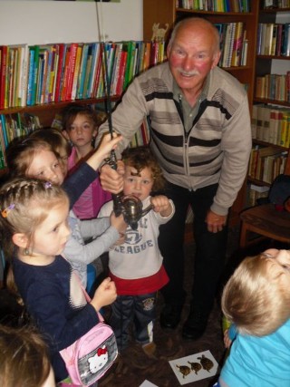 Dnia 2.06. 2014 , Filia Biblioteki w Męcinie. spotkanie z Bogusławem Rębisz ze Związku Wędkarzy w Limanowej, który przyniósł dużą liczbę eksponatów i trofeów wędkarskich oraz kolorowych ilustracji różnego rodzaju ryb. Czytanie na głos bajki ,, O Rybaku i złotej rybce’’ było podsumowaniem ciekawego spotkania z przedszkolakami z Męciny oraz potrzebę ochrony przyrody.
