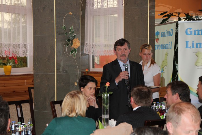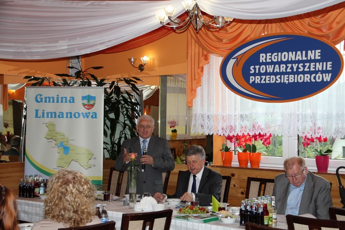 Wójt Gminy Limanowa – Władysław Pazdan w swoim wystąpieniu pn. „Przedsiębiorczość w Gminie Limanowa” przedstawił charakterystykę gminy pod względem powierzchni, liczby ludności i położenia geograficznego. Wskazał na najważniejsze kierunki rozwoju gminy tj. na budowę dróg, sieci wodociągowych i kanalizacyjnych, co bez wątpienia ma duży wpływ na atrakcyjność terenu pod późniejsze inwestycje gospodarcze. Wspomniał, że na terenie gminy zarejestrowanych jest blisko 1200 podmiotów gospodarczych, a jeszcze dziesięć lat temu (2004 r.) było ich zaledwie około 400, przy czym w całym powiecie limanowskim działa 9000 zarejestrowanych przedsiębiorstw. Przedstawił następnie obowiązujące na terenie Gminy Limanowa stawki podatku od nieruchomości oraz środków transportowych. Na koniec wspomniał o nowelizacji ustawy o promocji zatrudnienia i czekającymi w związku z tym zmianami w urzędach pracy. Przypomniał także przedsiębiorcom, że istnieje możliwość dofinansowania kształcenia młodocianych pracowników.