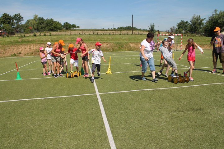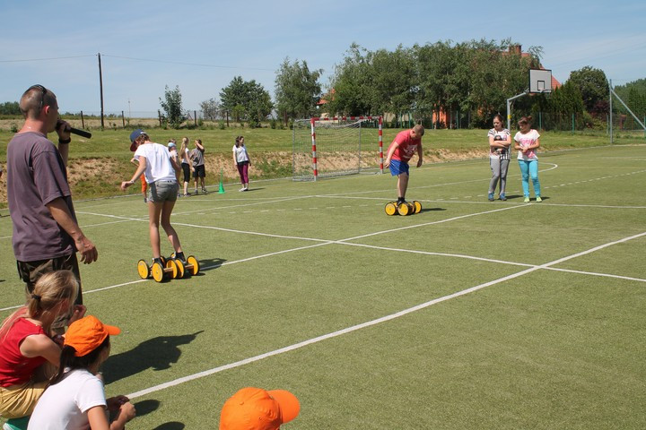 Dla sportowców przygotowano następujące konkurencje: mini rowerki, rowerki jednokołowe, biegi w workach, biegi z maczugą, wyścigi na rolkach ,,WAWAGO’’. W wolnej chwili można było potańczyć w rytmie najnowszej muzyki na macie tanecznej. Dodatkowymi atrakcjami był pokaz baniek mydlanych, a także pokaz umiejętności strażackich, które dzieci mogły obejrzeć dzięki uprzejmości OSP Nowe Rybie. Ponadto rozegrano dwa mecze pomiędzy uczniami z Rupniowa , a uczniami z naszej szkoły. Ta ostatnia konkurencja, a szczególnie rzuty karne ostatecznie przesądziły o wygranej dla Nowego Rybia w kategorii klas starszych. Nasza szkoła mimo kiepskich prognoz początkowych „z klasą” pobiła rywali w obu kategoriach i zdobyła aż dwa puchary. Nagrody zostały uroczyście wręczone na zakończenie rozgrywek przez Dyrektora Szkoły Podstawowej w Nowym Rybiu - Marię Gąsiorek.