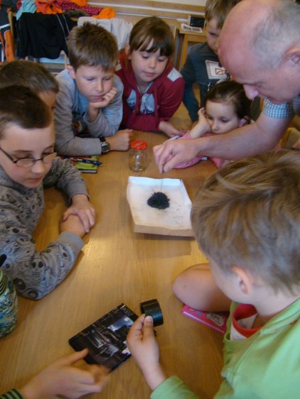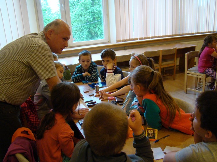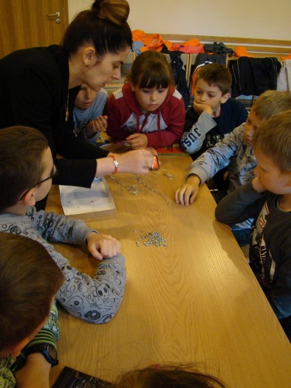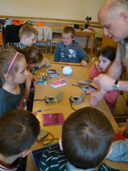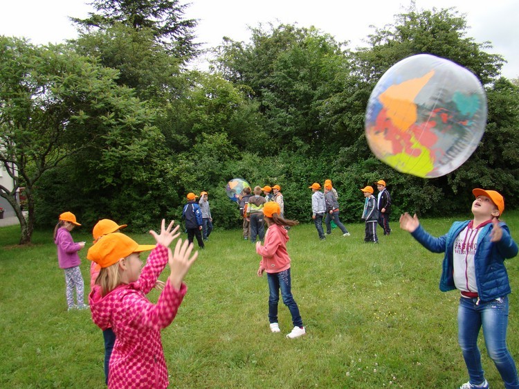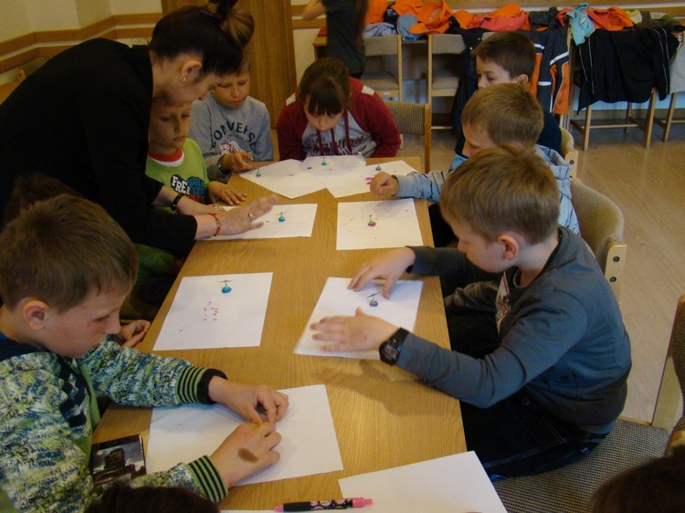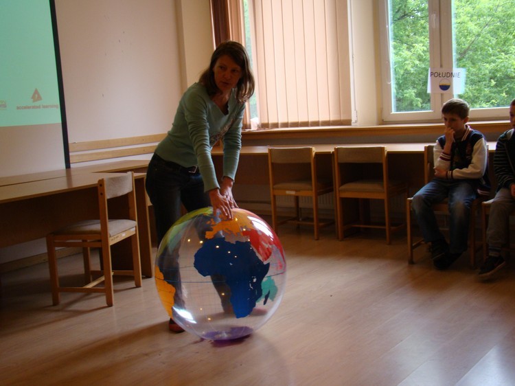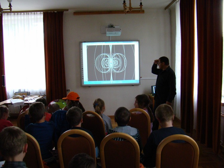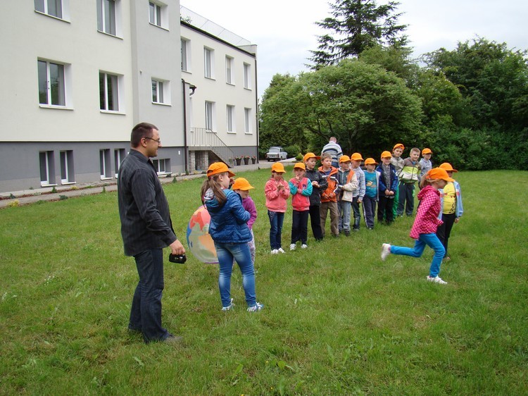 Pierwsze zajęcia odbyły się w Centralnym Obserwatorium Geofizycznym w Belsku. Tam dydaktycy w przystępny sposób dla grupy wiekowej tłumaczyli, na czym polega pole magnetyczne i inne zjawiska, a wszystkie informacje poparte były doświadczeniami. Bieguny magnetyczne – hmm, na pewno zapamiętane przez naszych uczestników, takie same się odpychają, a przeciwieństwa się przyciągają – prawie jak w życiu. Bardzo uczestnikom podobały się doświadczenia z bateriami słonecznymi, gdzie każdy miał możliwość, ba, każdy bardzo chciał spróbować, że to działa bez widocznego dopływu prądu. Na przykład za pomocą „magicznej różdżki” zaświecały się żarówki trzymane przez uczniów. Po części dydaktycznej przyszedł czas na trochę relaksu. Dzieci otrzymały od dydaktyków dwie ogromne piłki balonowe i brały udział w konkursach. Było dużo śmiechu i radości.
