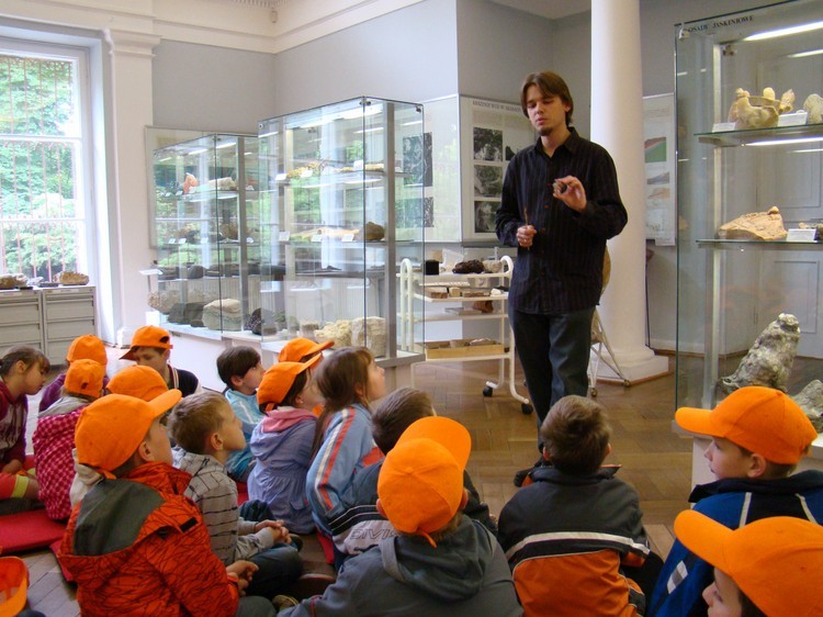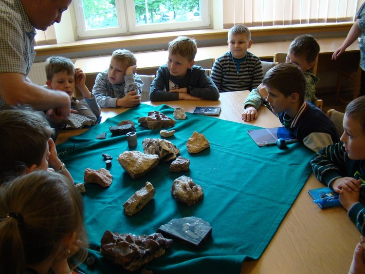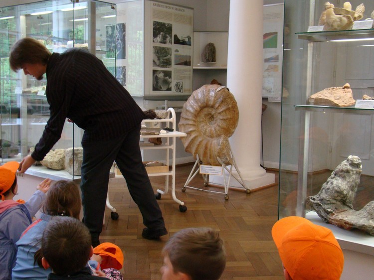 Warsztaty muzealne prowadzone były w sposób ciekawy, prowadzący przedstawiał pochodzenie i właściwości różnych skał. Każdy oglądany „kamień” wzbudzał ciekawość uczniów. Eksponaty muzealne zachwyciły naszych uczestników. Uczniowie byli pod wrażeniem zobaczonych między innymi meteorytów, jak i ekspozycji ssaków zimnolubnych i ciepłolubnych - czaszka mamuta była naprawdę potężna. Dziewczęta zachwyciła komnata bursztynów, a szczególnie biżuteria z nich wykonana. Każda z nich marzy teraz o takiej biżuterii.