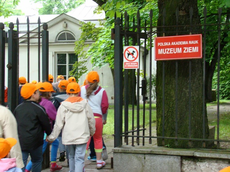 Ostatnim etapem naszej wyprawy była wizyta w Muzeum Ziemi Polskiej Akademii Nauk. Zanim dotarliśmy do celu, dzieci jadąc autokarem z jednego punktu do drugiego miały możliwość zobaczenia stolicy w całej okazałości: Pałac Kultury i Nauki, Sejm i Senat, Pałac Prezydencki, Stadion Narodowy, a wyjeżdżając już z Warszawy - Lotnisko Chopina. Z zachwytem oglądały w realu obiekty, które znały wcześniej tylko ze zdjęć.