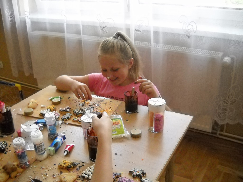 Świetlica w Starej Wsi wyszła najmłodszym naprzeciw przygotowując zajęcia artystyczne oraz kulinarne. Dzieci za pomocą różnych technik wykonywały piękne rysunki, a swoje zdolności które przelały na papier później wykorzystywały dekorując samodzielnie przygotowane wypieki – ciasta i ciasteczka. Zasłużenie najmłodsi na koniec mogli skosztować zrobione przez siebie słodkości.