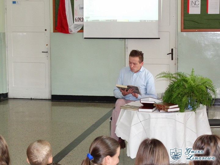 Dzień 6 września - Narodowe Czytanie, w tym roku „Trylogii” Henryka Sienkiewicza. Fragmenty dzieł jednego z najwybitniejszych polskich pisarzy usłyszeć można było m.in. w Szkole Podstawowej nr 2 w Męcinie. Teksty czytane były przez Przewodniczącego Rady Gminy Limanowa – Józefa Oleksego, Wojciecha Korabika z Urzędu Gminy Limanowa, ks. wikariusza Piotra Cierniaka, Dyrektora szkoły – Bogdana Woźniaka oraz nauczycielki – Halinę Woźniak i Jadwigę Kuczaj, która zadbała o odpowiednią oprawę spotkania.