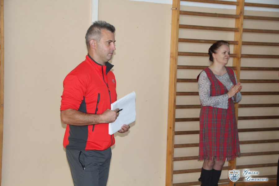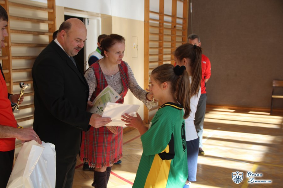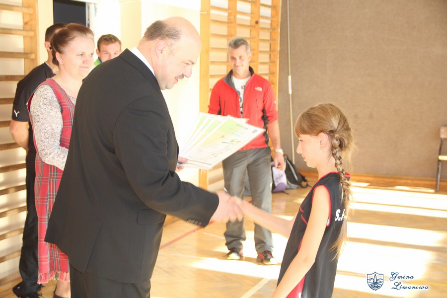 Dyplomy, oraz nagrody rzeczowe wręczyli: Marek Ziaja – Sekretarz Gminy Limanowa, Wojciech Korabik – z Urzędu Gminy Limanowa oraz Magdalena Strzebońska – Dyrektor Zespołu Szkół w Pisarzowej.