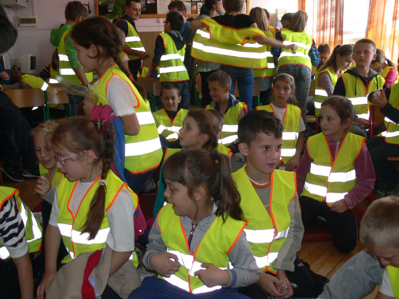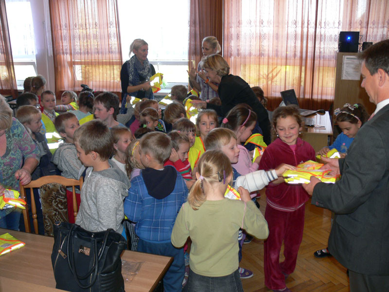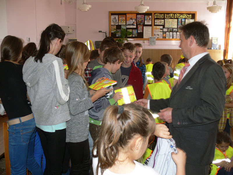 Przy tej okazji, składamy serdeczne podziękowanie mgr. Waldemarowi Olszyńskiemu Dyrektorowi Małopolskiego Ośrodka Ruchu Drogowego w Nowym Sączu, mgr. inż. Markowi Boruckiemu Prezesowi Ochotniczej Straży Pożarnej w Siekierczynie, Radzie Rodziców Szkoły Podstawowej Nr 2 w Siekierczynie za ufundowanie wszystkim dzieciom naszej szkoły odblaskowych kamizelek oraz PZU za ufundowanie odblasków, bo „Odblask już o zmierzchu świeci – pamiętają w Siekierczynie wszystkie dzieci”. Pamiętajmy! Każdy, kto ma choć mały element odblaskowy przy plecaku, czy rowerze, jest bardziej widoczny dla kierowcy, a zatem bardziej bezpieczny.