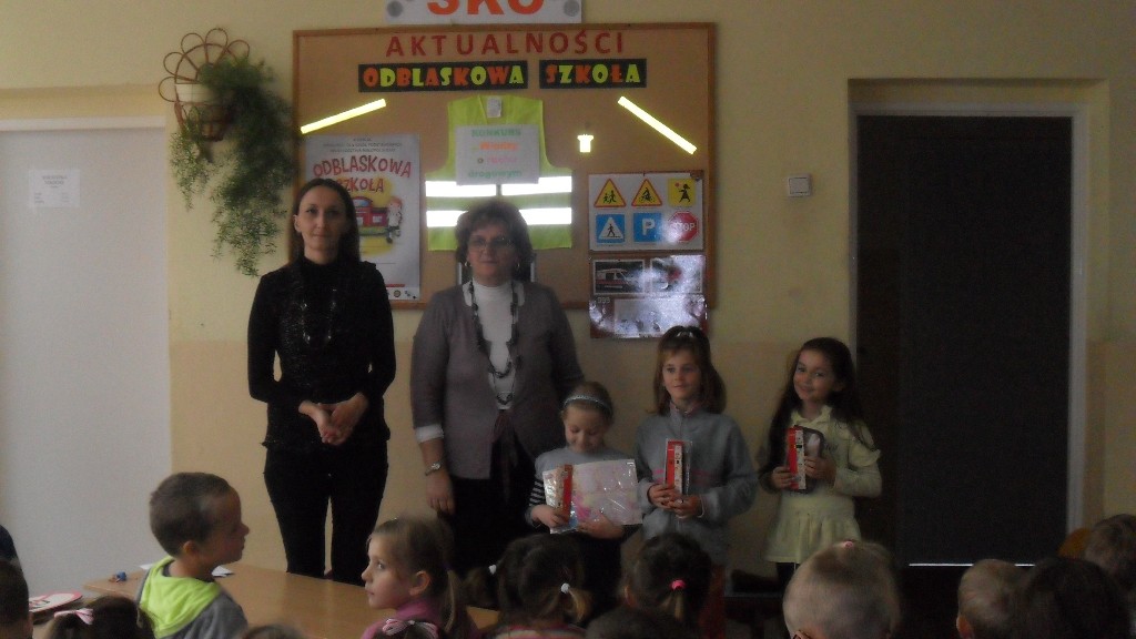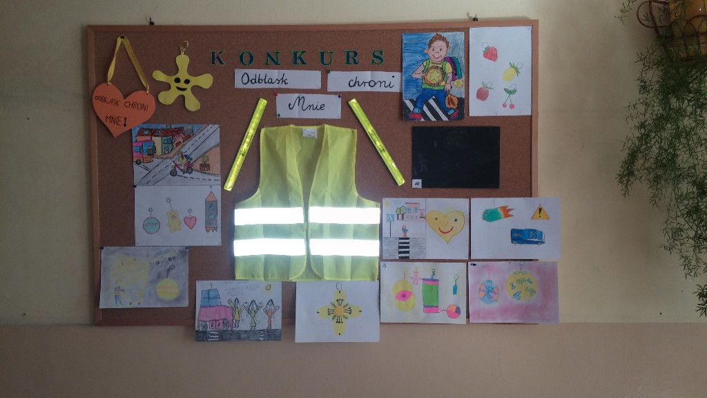 Zorganizowany w szkole konkurs plastyczny „Odblask chroni mnie” spotkał się z dużym zainteresowaniem dzieci. Wszyscy uczestnicy otrzymali nagrody ufundowane przez Radę Rodziców. Szkolny konkurs „Wiedzy o ruchu drogowym” , zajęcia pozalekcyjne i inne działania organizowane są po to, aby uczniowie i rodzice uświadomili sobie, jak ważne jest noszenie odblasków, zwłaszcza w jesiennych i zimowych miesiącach, kiedy wcześnie zapada zmrok. Każdy, kto nosi odblask, staje się bardziej widoczny na drodze, a co za tym idzie- bardziej bezpieczny.