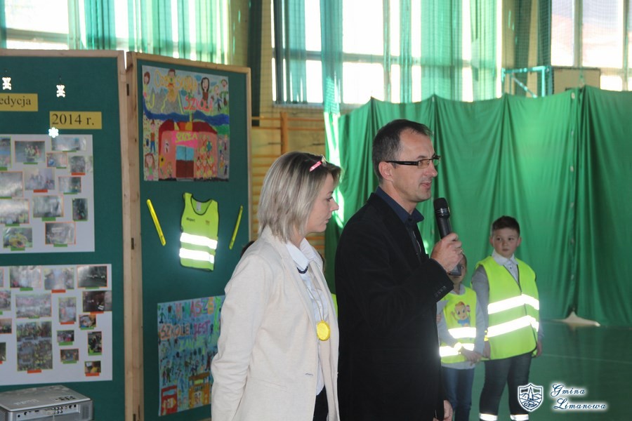 W uroczystym podsumowaniu konkursu uczestniczyli zaproszeni goście: Dyrektor Gminnego Zespołu Obsługi Szkół w Limanowej – Edyta Król, funkcjonariusze Wydziału Ruchu Drogowego Komendy Powiatowej Policji w Limanowej – asp. Daniel Strug, asp. Artur Uryga, sierż. szt. Piotr Kołdras, pracownicy SKOK Stefczyka oddział w Limanowej: Iwona Wrzecionek – kierownik placówki, Aneta Klag – opiekun finansowy oraz dyrekcja szkoły, nauczyciele i uczniowie.