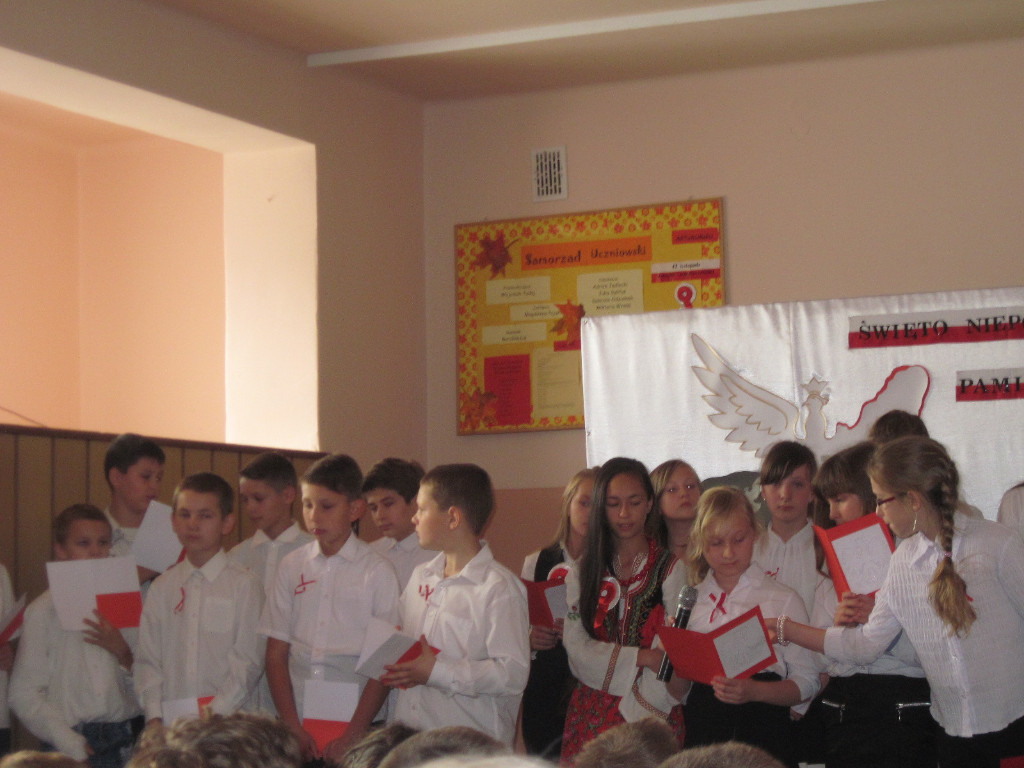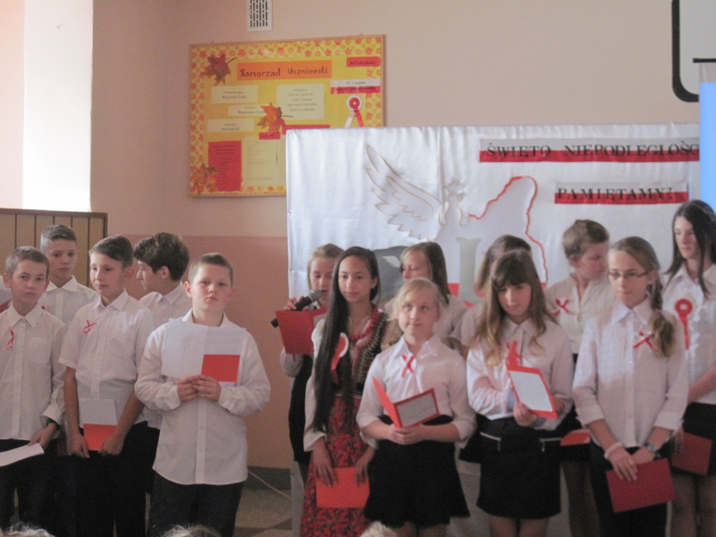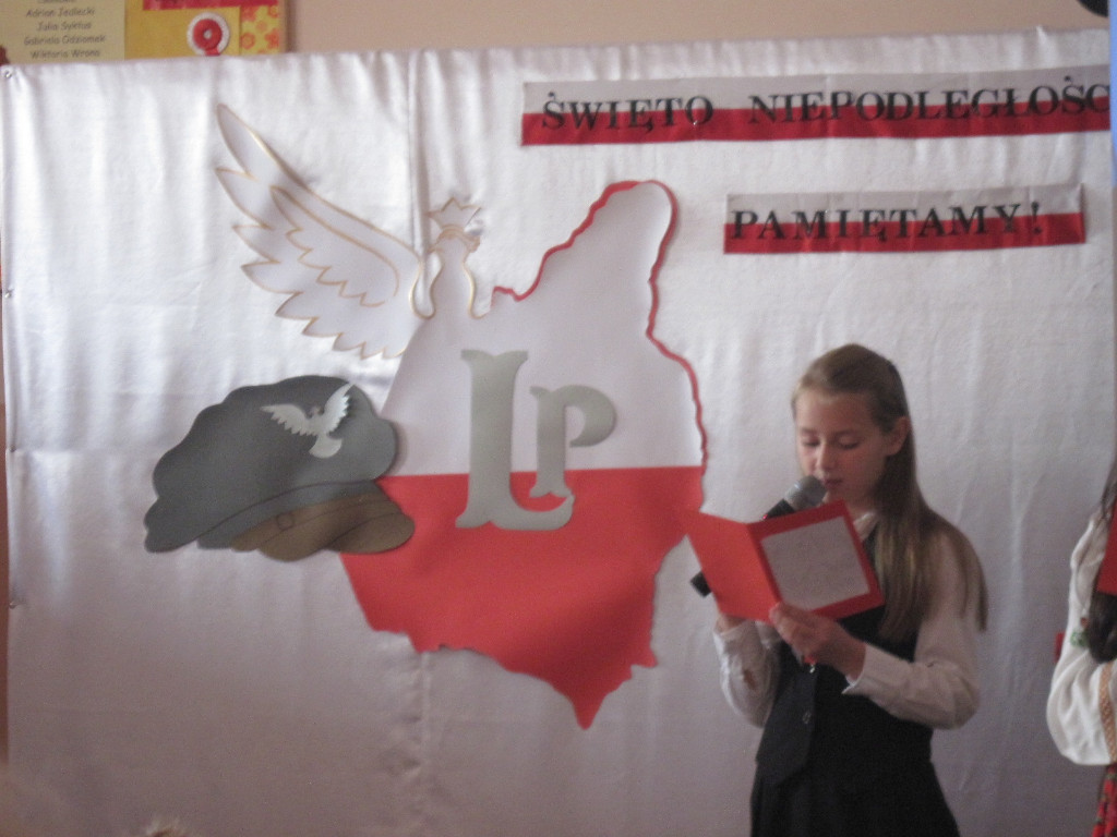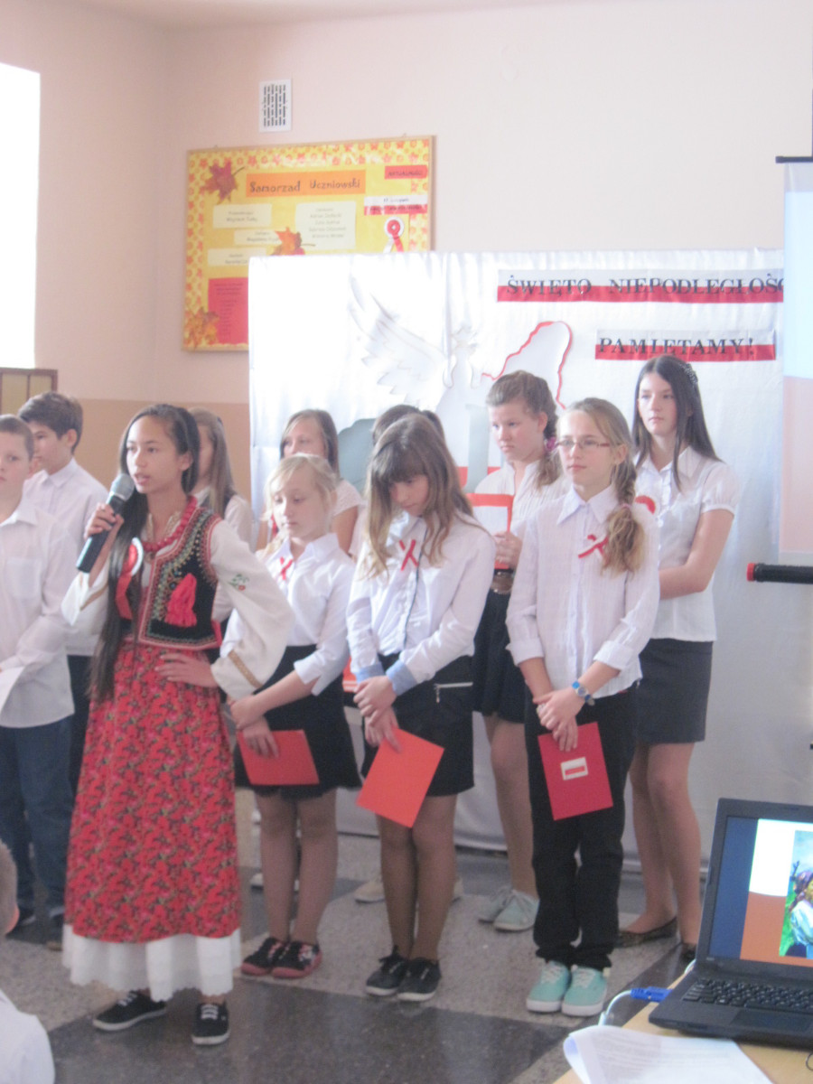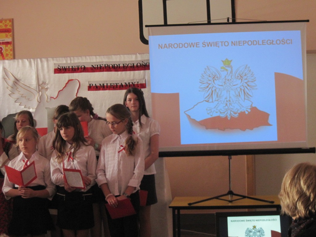 Wydarzenia te znalazły odzwierciedlenie w uroczystej akademii przygotowanej przez uczniów pod kierunkiem Barbary Szewczyk. Młodzi artyści przedstawili niełatwą drogę Polaków do odzyskania wolności. Przypomnieli krwawo stłumione przez zaborców powstania narodowe oraz dzień tryumfu – 11 listopada 1918 r. Podkreślili fakt, że zarówno w dniach klęsk jak i zwycięstw, naszym przodkom towarzyszyły symbole narodowe. O polskim godle, fladze i hymnie opowiedział uczniom „Polak Mały”, bohater filmu animowanego zrealizowanego przez Instytut Pamięci Narodowej.