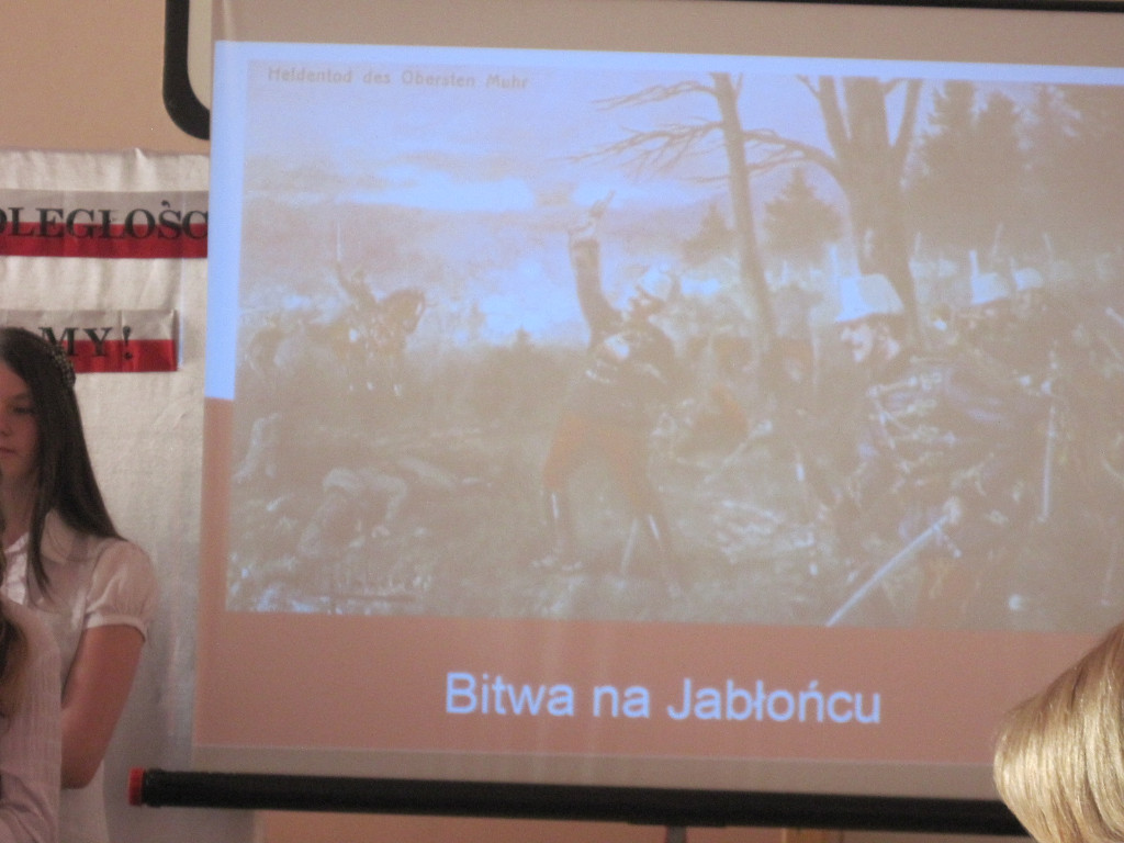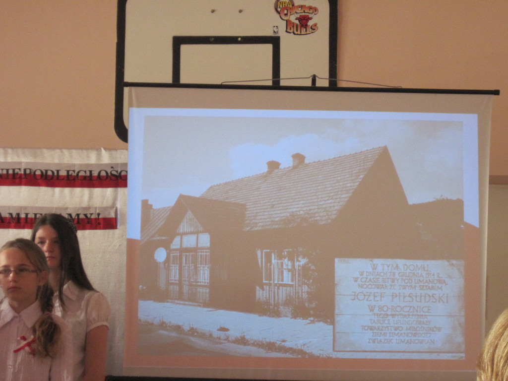 Ważnym elementem uroczystości było odniesienie do faktów, jakie miały miejsce w Limanowej w grudniu 1914 r. Uczniowie, na podstawie wspomnień naocznego świadka wydarzeń, właściciela dworu w Mordarce, Jana Sitowskiego, ukazali entuzjazm, jaki panował w mieście po przybyciu Józefa Piłsudskiego i jego żołnierzy. Przybliżyli również historię oraz legendy związane z bitwą na jabłonieckim wzgórzu. Podczas akademii nie zabrakło pieśni z okresu I wojny światowej, które śpiewała cała społeczność szkolna. Ponadto akademię uświetniła wspaniałym wykonaniem pieśni „Ułani, ułani” uczennica klasy V Agata Nguyen – uczestniczka małopolskiego przeglądu pieśni legionowych w Nowym Sączu.