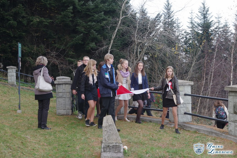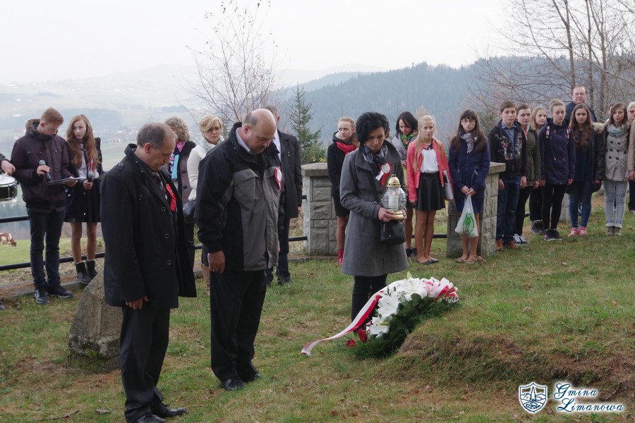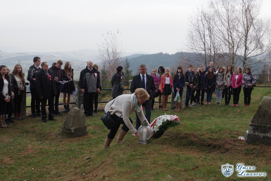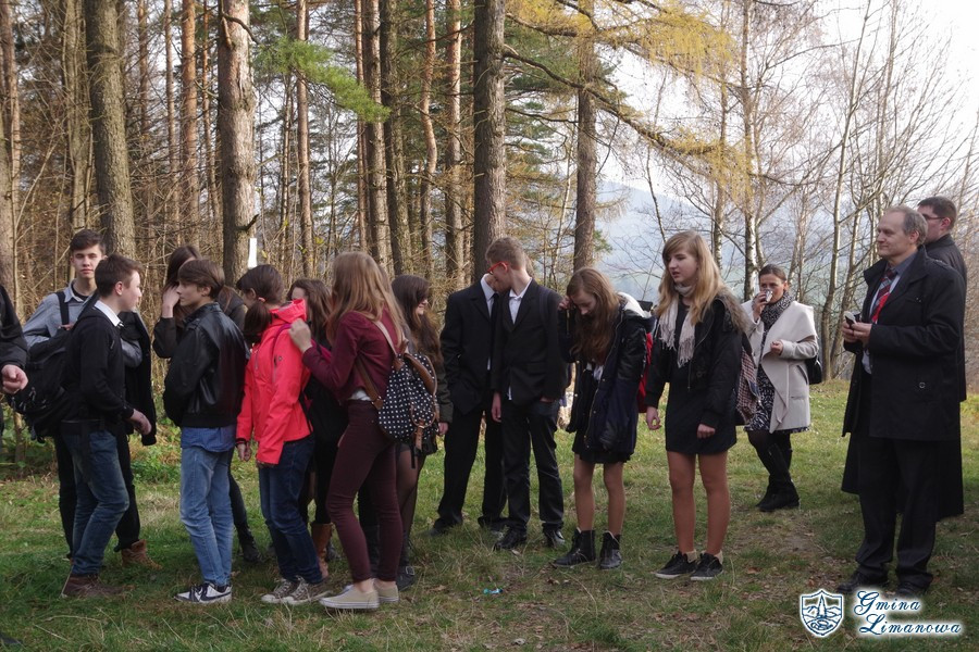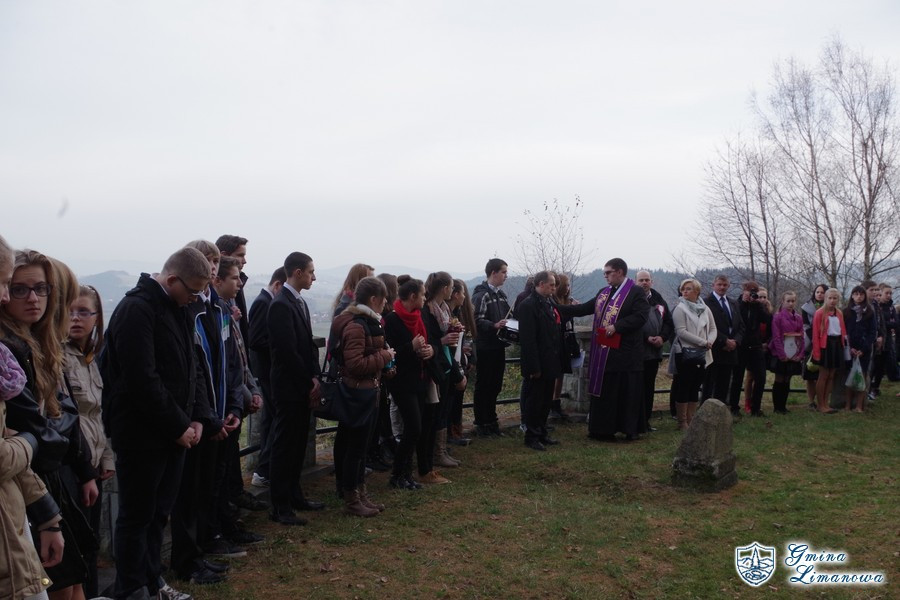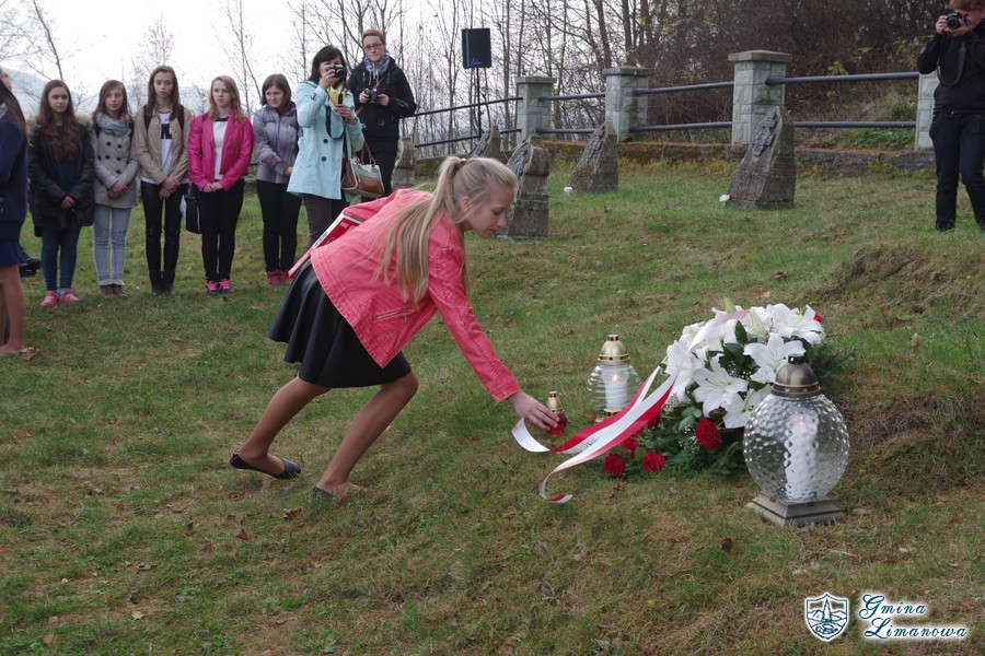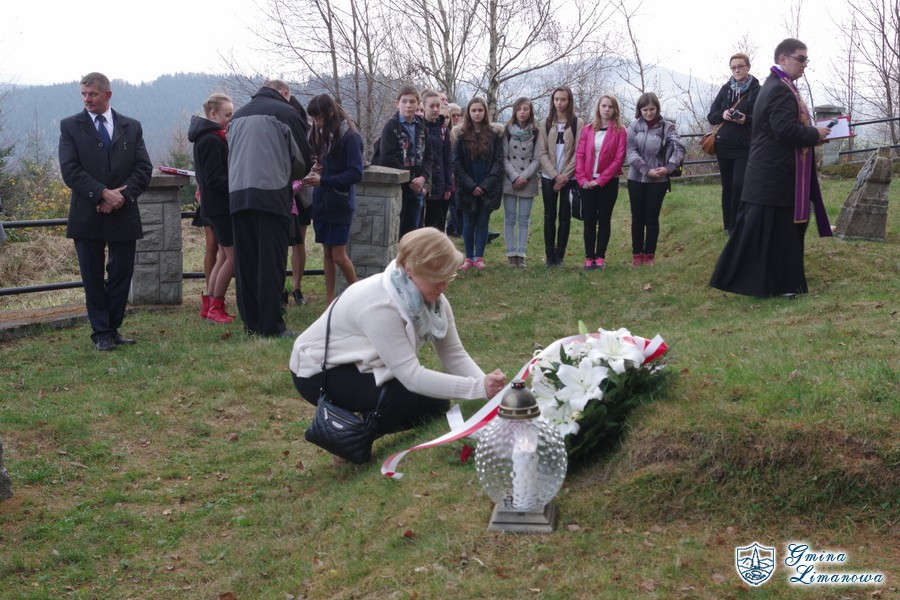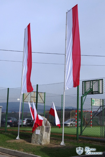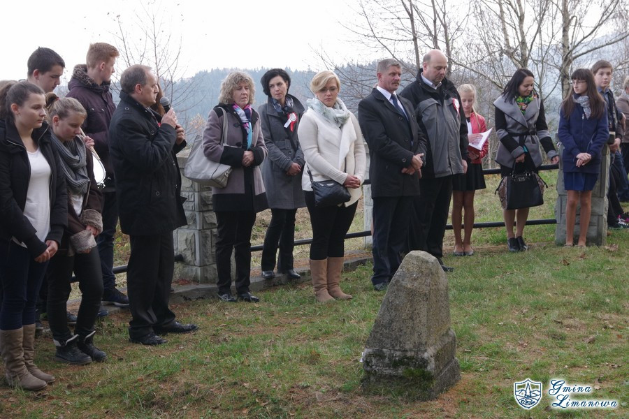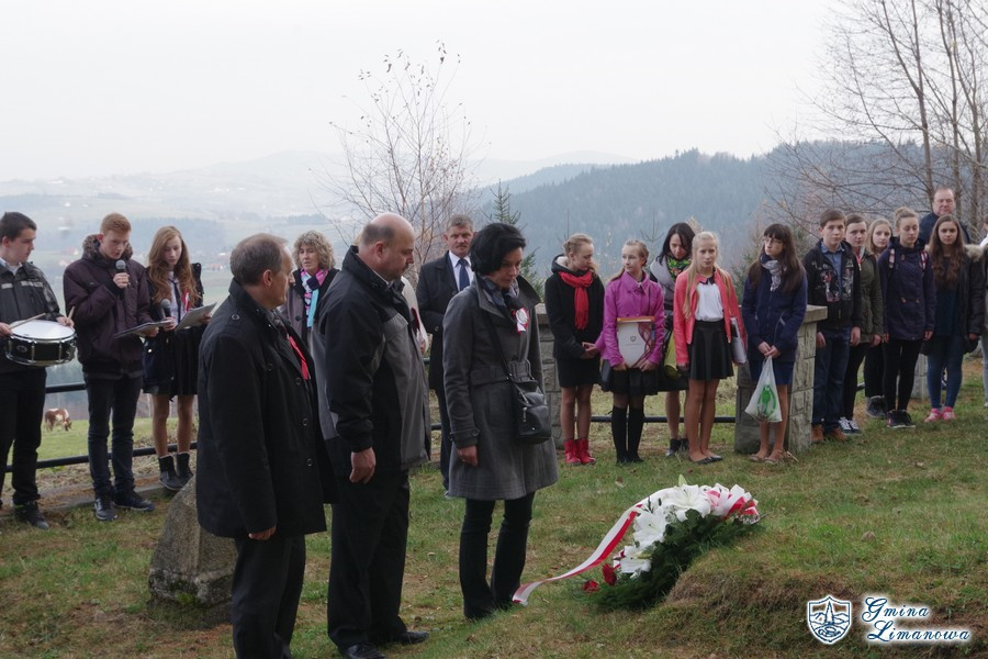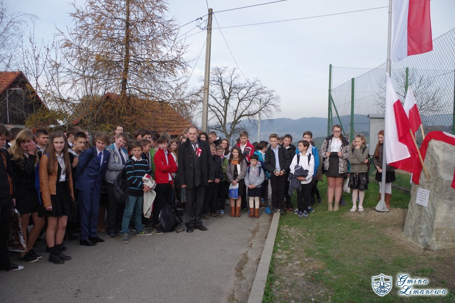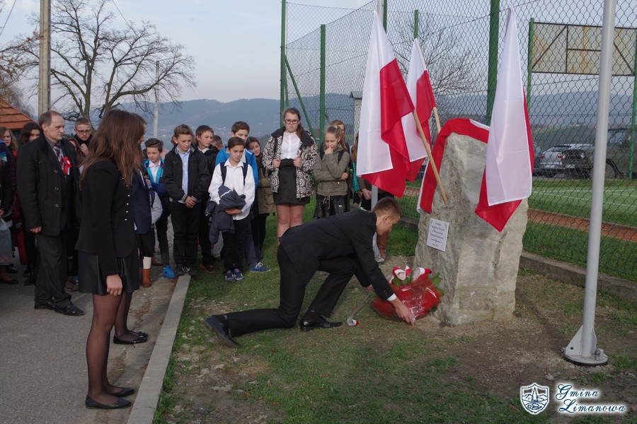 Kolejnym akcentem uroczystości było odsłonięcie kamienia upamiętniającego 100 rocznicę bitwy pod Limanową. Obelisk ufundowany przez radnego Eugeniusza Wojaka, stanął obok budynku szkoły, a jego odsłonięcia dokonała córka - Iwona Wojak-Ćwik. Pod pamiątkową bryłą młodzież szkolna uroczyście złożyła wiązankę kwiatów i zapaliła znicze.