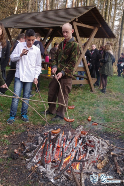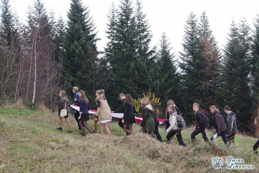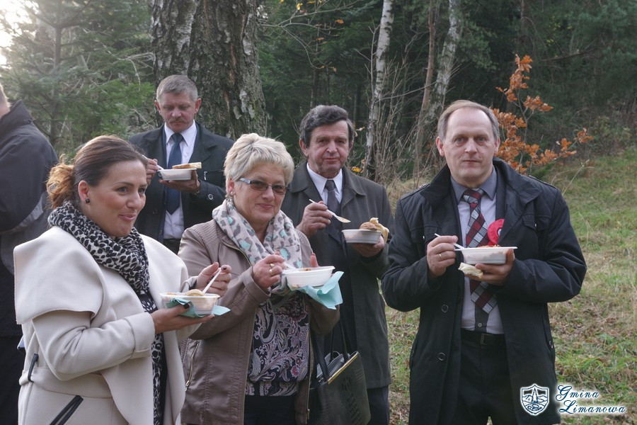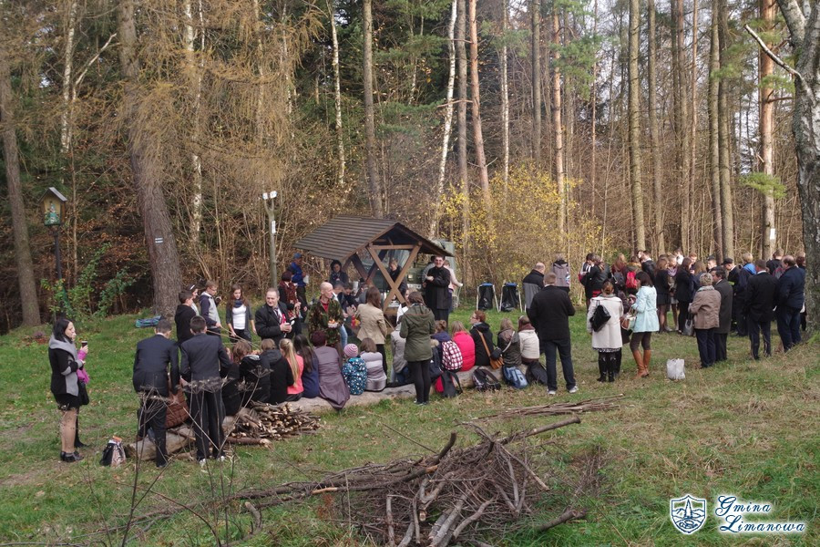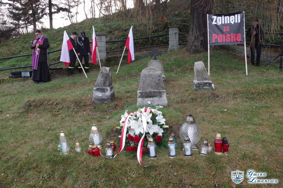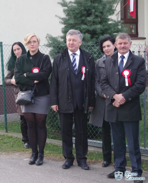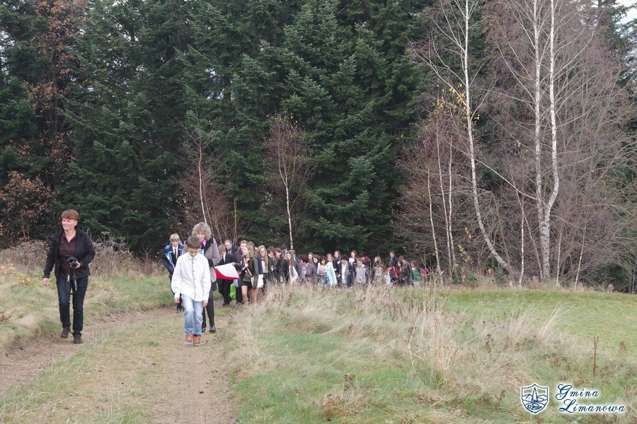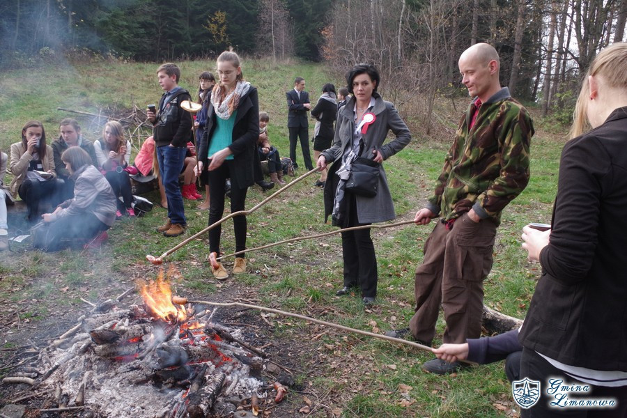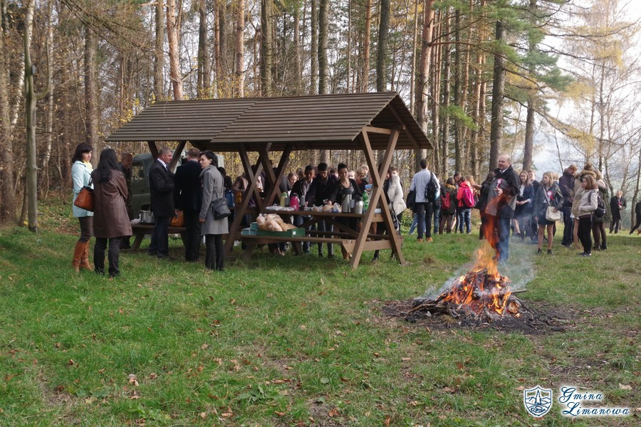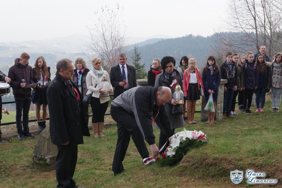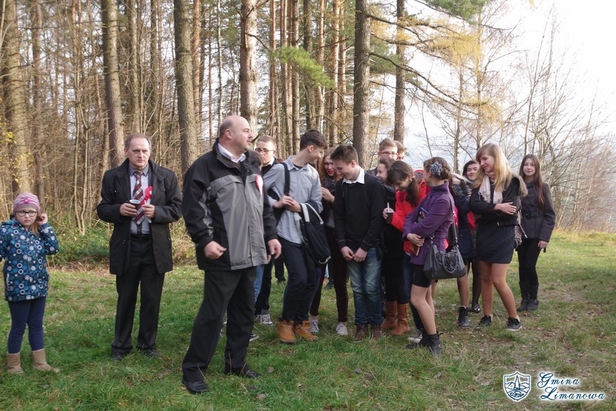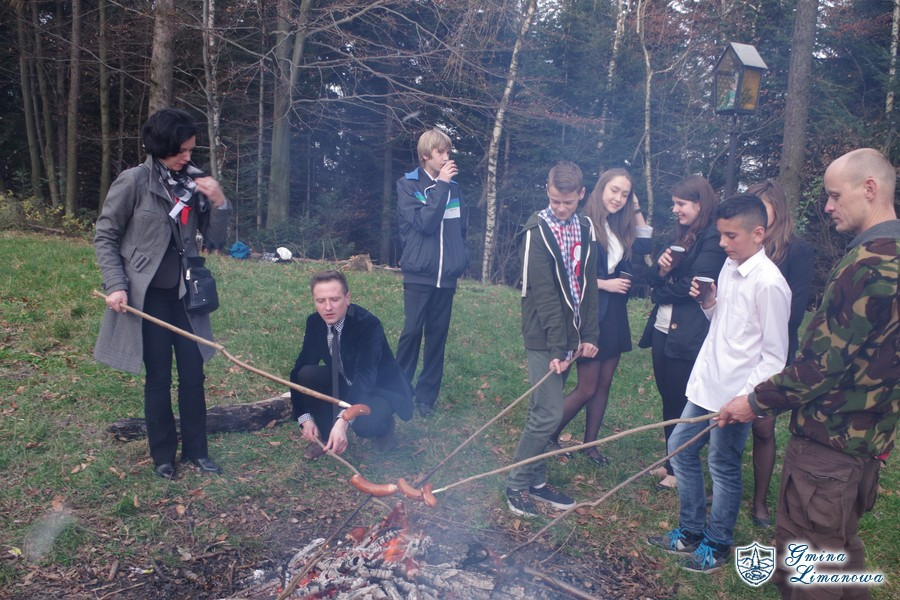 Kolejnym akcentem uroczystości było odsłonięcie kamienia upamiętniającego 100 rocznicę bitwy pod Limanową. Obelisk ufundowany przez radnego Eugeniusza Wojaka, stanął obok budynku szkoły, a jego odsłonięcia dokonała córka - Iwona Wojak-Ćwik. Pod pamiątkową bryłą młodzież szkolna uroczyście złożyła wiązankę kwiatów i zapaliła znicze.
