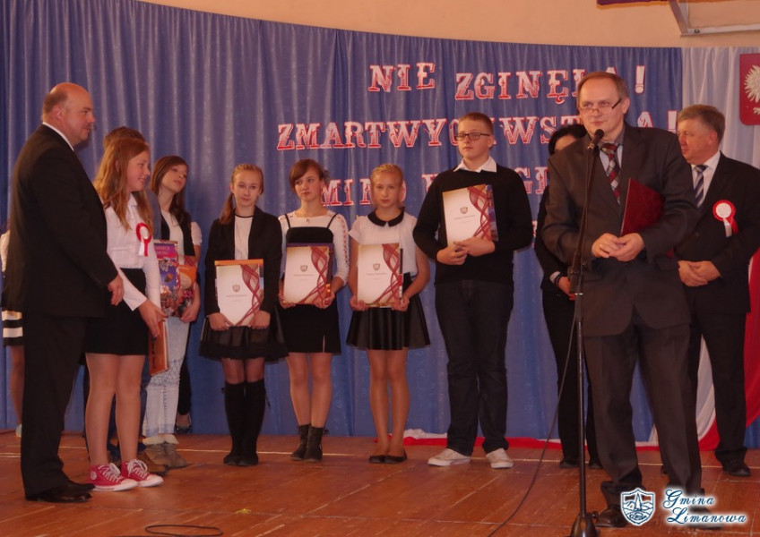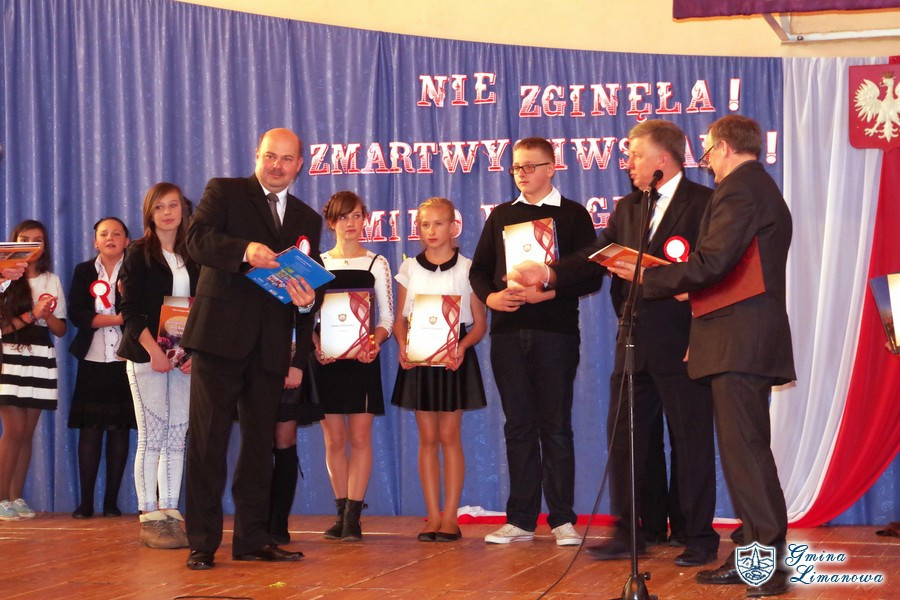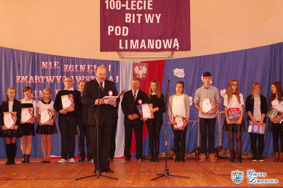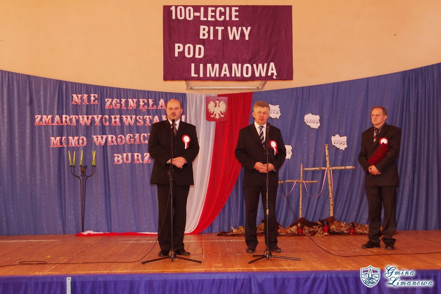 Po uroczystej akademii głos zabrali zaproszeni na uroczystość goście: Przewodniczący Rady Gminy Limanowa - Józef Oleksy, Sekretarz Gminy Limanowa – Marek Ziaja oraz Dyrektor Zespołu Szkół nr 2 w Starej Wsi – Marek Twaróg. W obchodach uczestniczyli także: Dyrektor Gminnego Zespołu Szkół w Limanowej – Edyta Król, Radny Gminy Limanowa – Eugeniusz Wojak, Sołtys wsi Stara Wieś II – Ryszard Piszczek, Prezes UKS „Gumisie” w Starej Wsi – Maria Kądziołka oraz emerytowany nauczyciel - Czesław Bukowiec. Następnie wręczono nagrody uczestnikom konkursu plastycznego zorganizowanego z okazji 100-lecia bitwy pod Limanową.