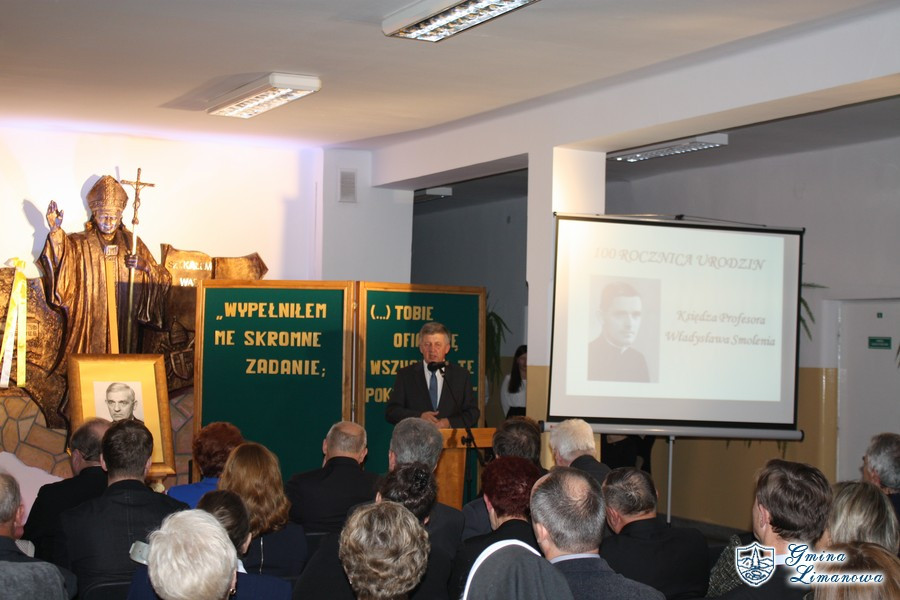 Dnia 10 listopada w Zespole Szkół nr 1 w Męcinie miała miejsce uroczystość poświęcona śp. księdzu profesorowi Władysławowi Smoleniowi. Z tej okazji mieliśmy zaszczyt gościć księdza doktora Tadeusza Bukowskiego i księdza Piotra Paska – dyrektorów Muzeum Diecezjalnego w Tarnowie, byłego proboszcza męcińskiej parafii księdza Kazimierza Trybułę, księdza proboszcza Antoniego Pisia, a także władze Gminy Limanowa na czele z Józefem Oleksym, rodzinę księdza profesora oraz licznie zgromadzonych mieszkańców Męciny.