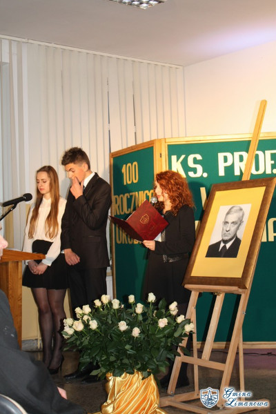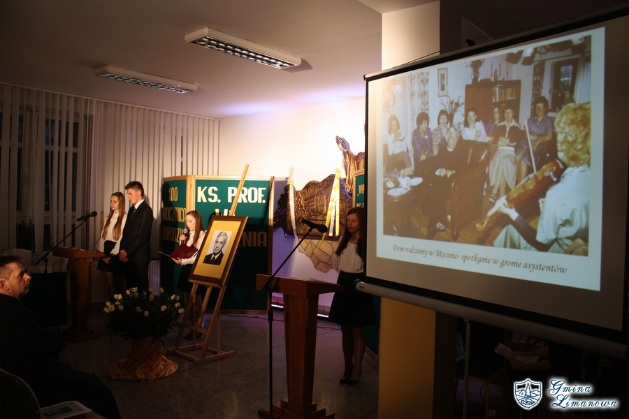 Wieczornica rozpoczęła się od przemówienia dyrektor szkoły Marii Lupy, która powitała gości i zaprosiła do obejrzenia programu artystycznego. Zaprezentowano w nim życiorys księdza profesora, Jego dorobek naukowy, wspomnienia uczniów i studentów, którzy mieli zaszczyt kształcić się pod kierunkiem Jubilata. Całości przedstawienia dopełniały umiejętnie wplecione w to, szczególne i wyjątkowe curriculum vitae, piosenki oraz utwory liryczne.