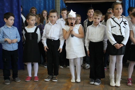 Później Dziadkowie obejrzeli część artystyczną, przygotowaną przez najmłodszych uczniów szkoły czyli dzieci z oddziału przedszkolnego i klas I-III. W programie były wiersze i piosenki, które podkreślały rangę babci i dziadka w rodzinie oraz wyrażały gorące uczucia wdzięczności i miłości wnuków dla szanownych seniorów. W niejednym oku zakręciła się łza.