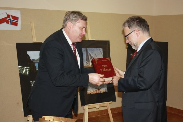Dodatkowo w podniosły nastrój spotkania wprowadziła wszystkich klasyczna muzyka norweskiego kompozytora Edwarda Gring, udostępniona przez znanego limanowskiego podróżnika Marka Dudka - uczestnika m.in. wyprawy górskiej do Norwegii. Dla wszystkich zebranych wśród których byli m.in.: Helena Golińska – Instruktor Miejskiej Biblioteki Publicznej w Limanowej, Iwona Kuzak – dziennikarka ze Stowarzyszenia „Razem dla Regionu” oraz lokalni artyści z Męciny i Pisarzowej, cennym doświadczeniem była dyskusja z Konsulem, który w niezwykle ciekawy sposób opowiadał o urokach Królestwa Norwegii, fascynujących miejscach, mentalności ludzkiej i specyficznym klimacie. Uczestnicy byli pod wielkim wrażeniem osoby Konsula, który w sposób ciepły i ciekawy mówił o kraju czystych wód i malowniczych krajobrazów. Gość przywiózł ze sobą materiały promocyjne o Norwegii, które zostały przekazane do bibliotek gminnych.