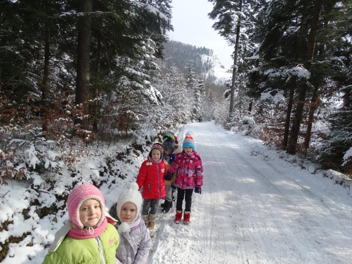 Zima to trudna do przetrwania pora roku dla zwierząt leśnych. Wszystko przykryte jest śniegiem i zwierzętom trudno jest znaleźć pożywienie. Nasi czworonożni przyjaciele cały dzień szukają pokarmu, ale często chodzą głodne. Trzeba im dostarczać pożywienie, zwłaszcza wtedy kiedy jest mróz, śnieg i marznący deszcz. Oddział Przedszkolny z opiekunem Haliną Woźniak postanowił zrobić im zimową niespodziankę. Mali detektywi, obserwowali ślady na śniegu: było ich sporo: tu biegł zajączek, tam sarenka, a jeszcze gdzie indziej ktoś prowadził sanki. Każde zwierzę, które chodzi po śniegu, nie robiło tego dla przyjemności. Jego wędrówka to ciągłe poszukiwanie pożywienia, którego zimą jest niewiele. Dzieci na wsi pamiętały o zwierzętach. Wszystkie resztki jedzenia, skorupki lub obierki odkładały do osobnego pojemnika, aby , gdy się napełni, wynieść go w okolice lasu – do zwierzęcej stołówki.