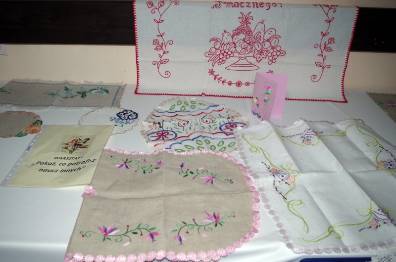 Na ręce nestorek KGW życzenia i kwiaty złożył sołtys Pisarzowej Andrzej Malinowski oraz Władysław Korabik. Panie zaprezentowały swoje prace pieczołowicie tworzone przez okres otwartych warsztatów. Prace z zakresu haftu, koronkarstwa, orgiami, ozdób świątecznych prezentowano na wystawie. Warsztaty i wystawa cieszyły się dużą popularnością. Uczestniczyły w nich trzy pokolenia mieszkańców Pisarzowej- babcie, mamy i wnuki. Ze względu na duże zainteresowanie ludzi młodych tymi zajęciami, Koło Gospodyń w Pisarzowej zamierza kontynuować działania pod nazwą „Czym skorupka za młodu nasiąknie…” Panie z Koła Gospodyń zostały także zaproszone do Zespołu Szkół w Pisarzowej w ramach realizowanego przez uczniów gimnazjum projektu „Ocalić od zapomnienia”. Członkinie Koła Gospodyń Wiejskich w Pisarzowej mają jeszcze dużo pomysłów, jak zachęcić młodzież do podtrzymywania tradycji i chętnie wykorzystają jej zainteresowanie i entuzjazm. Podczas uroczystości została również powołana nowa członkini Zarządu Koła Gospodyń Wiejskich w Pisarzowej - Małgorzata Górka , która otrzymała nominację jako wiceprzewodnicząca koła. Umiejętności i warsztat członkiń KGW najlepiej oddadzą zdjęcia – dla tych którzy naocznie nie obejrzeli wystawy.