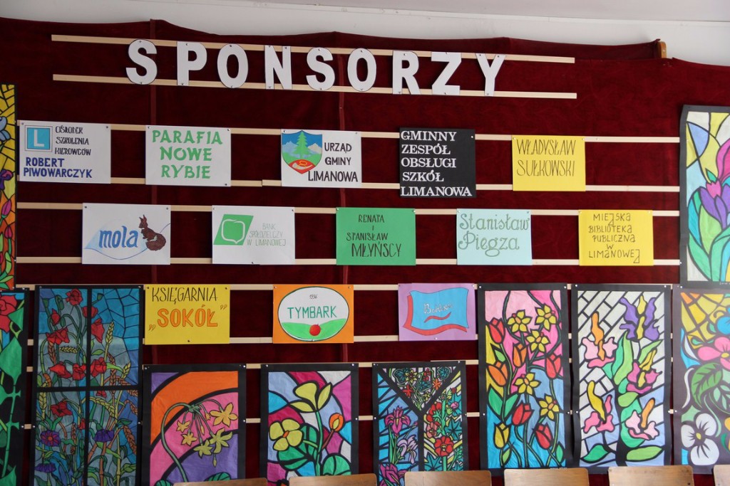 Organizatorzy i młodzież szkolna składają podziękowania sponsorom, dzięki którym możliwe było przeprowadzenie konkursu i zakup nagród dla wszystkich uczestników. Darczyńcy zaoferowali nie tylko pomoc finansową ale również rzeczową: