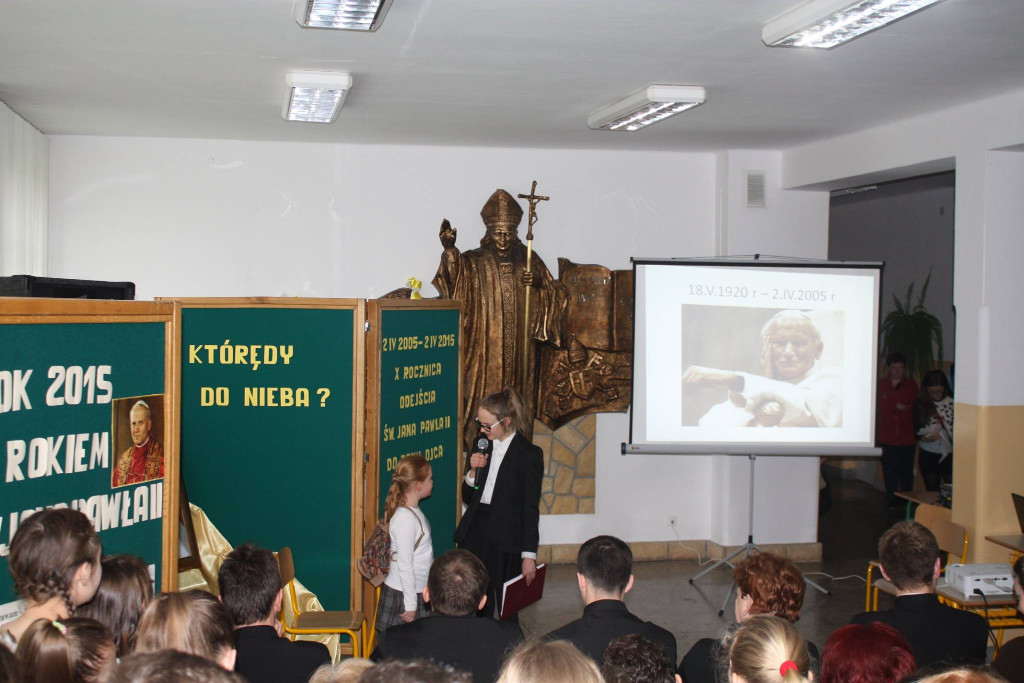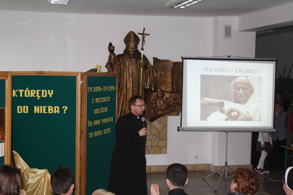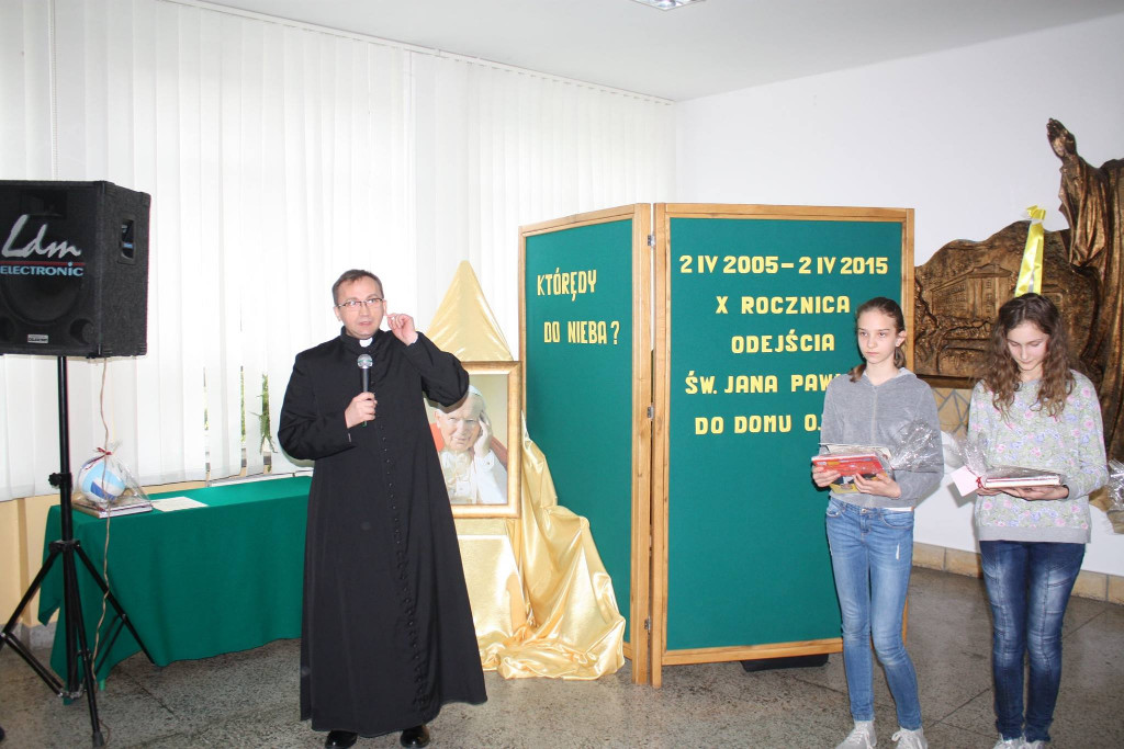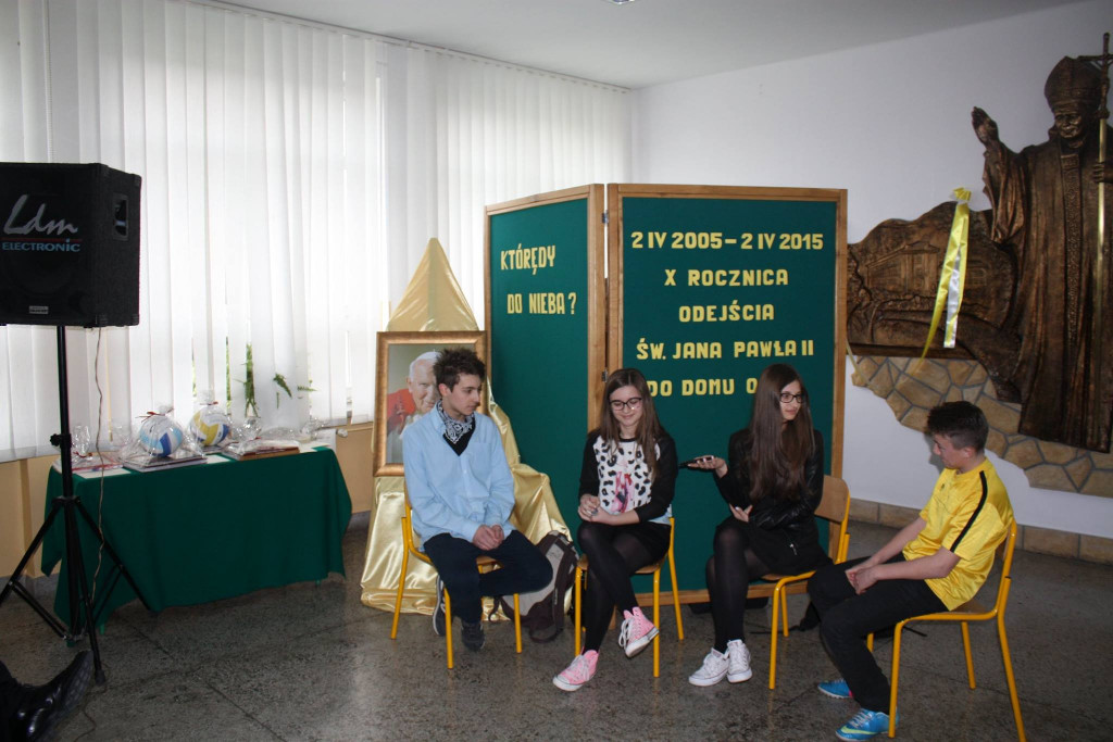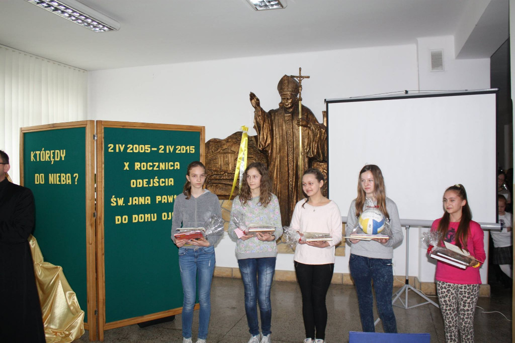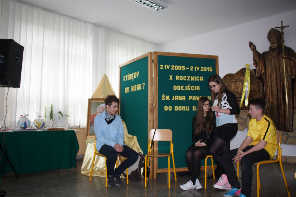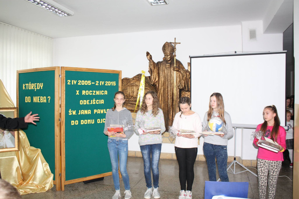 Rocznica śmierci Papieża stała się również okazją do zorganizowania konkursu wiedzy pt. „Którędy do nieba” poświęconego osobie wybitnego Rodaka. Uczniowie rywalizowali ze sobą w dwóch kategoriach wiekowych: kl. 4 – 6 szkoły podstawowej