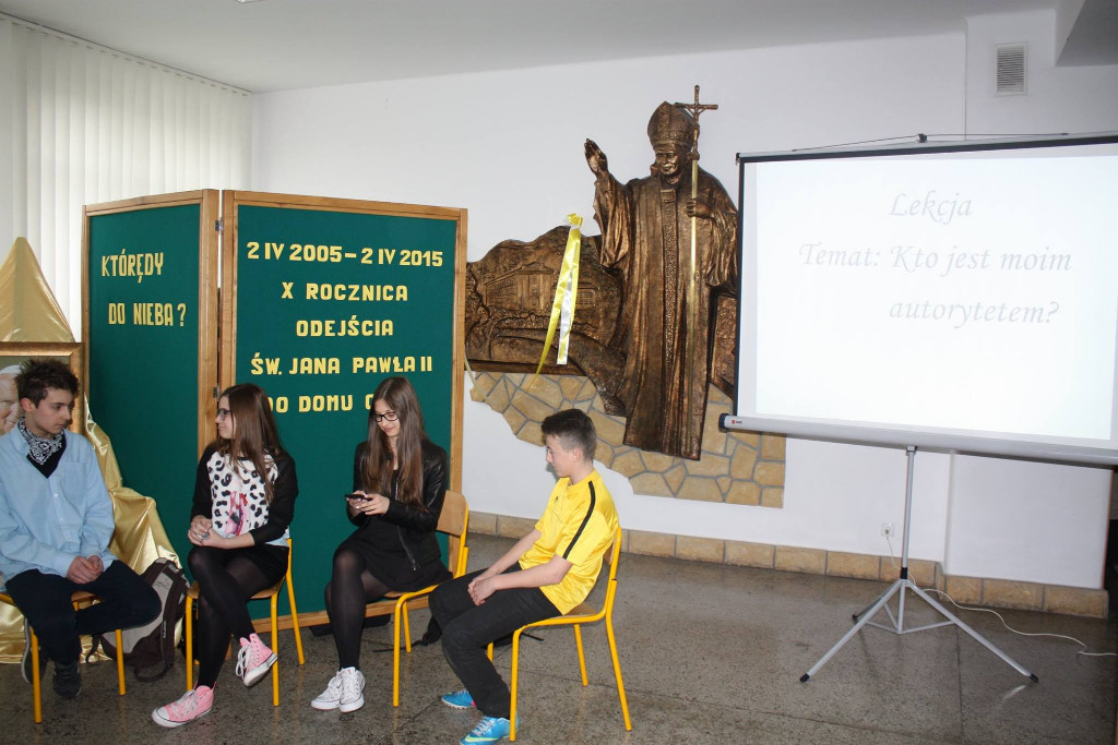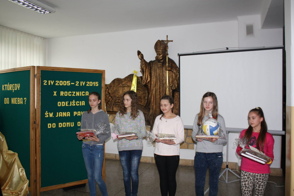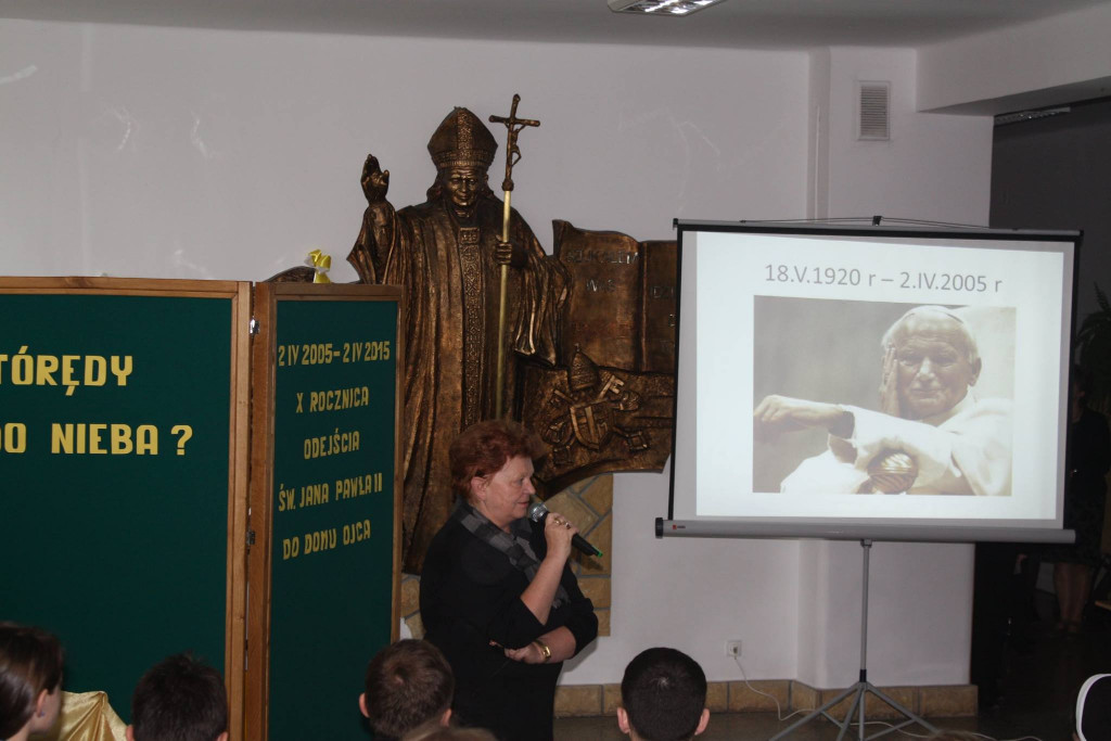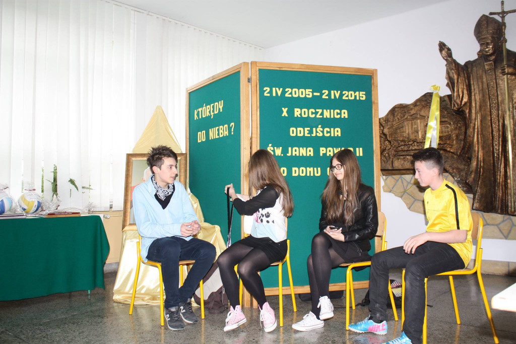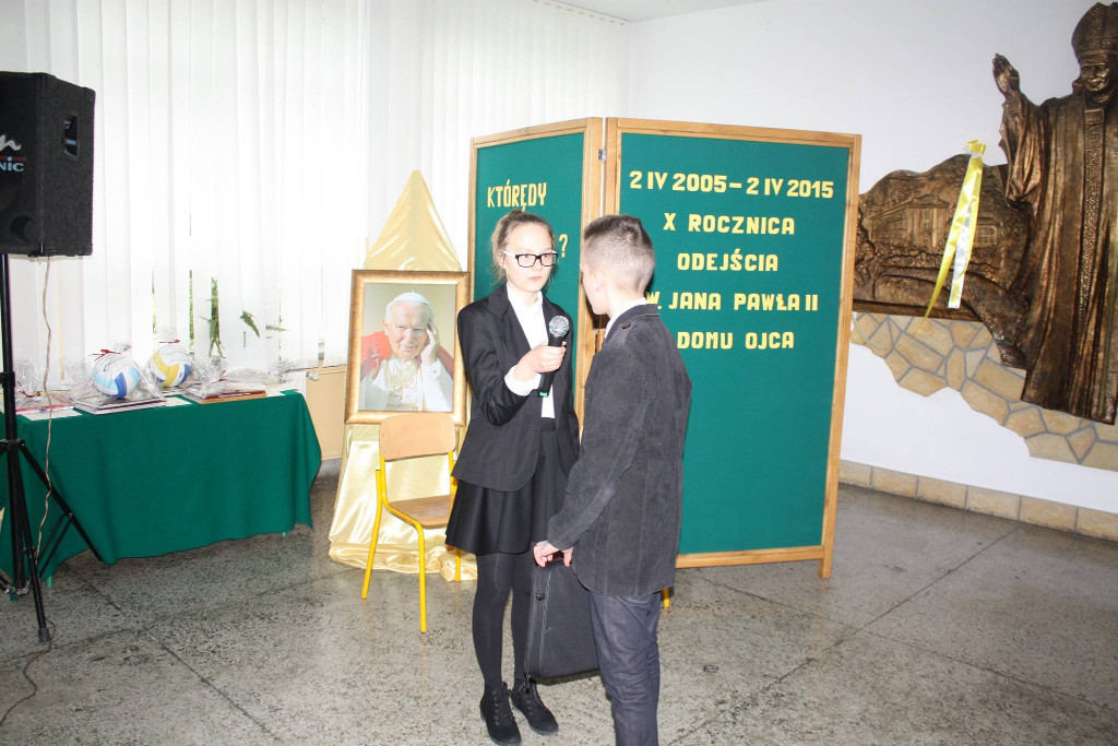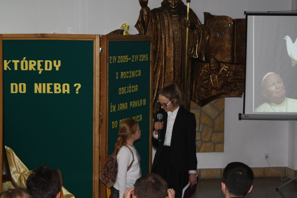 Rocznica śmierci Papieża stała się również okazją do zorganizowania konkursu wiedzy pt. „Którędy do nieba” poświęconego osobie wybitnego Rodaka. Uczniowie rywalizowali ze sobą w dwóch kategoriach wiekowych: kl. 4 – 6 szkoły podstawowej