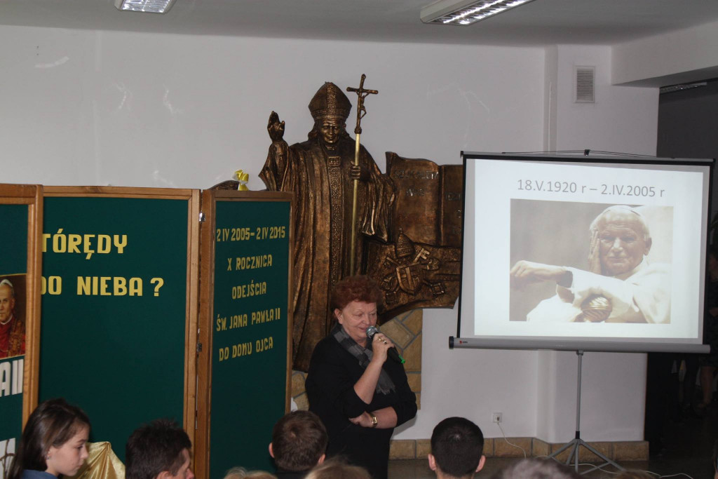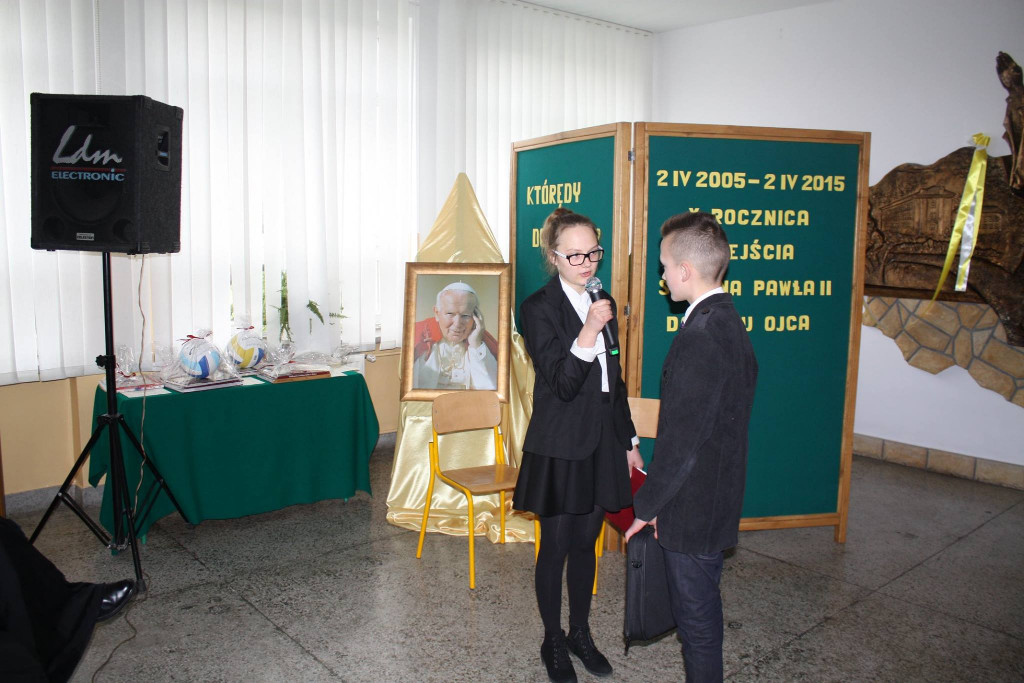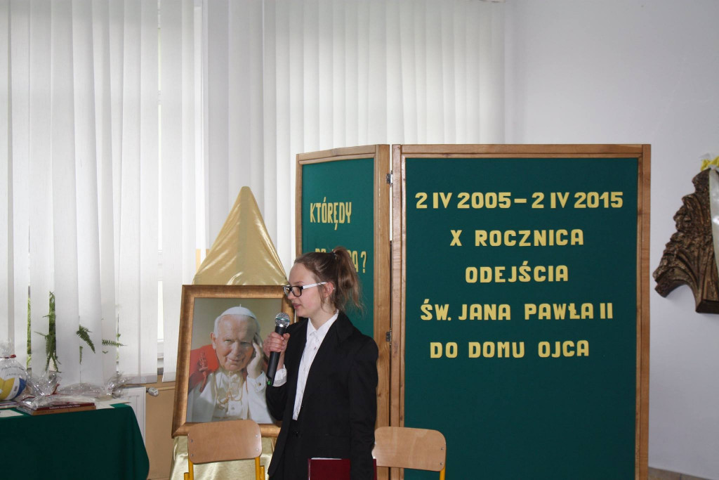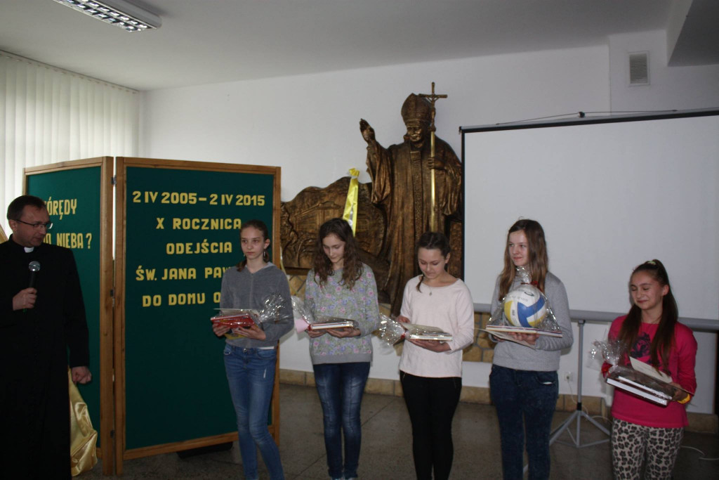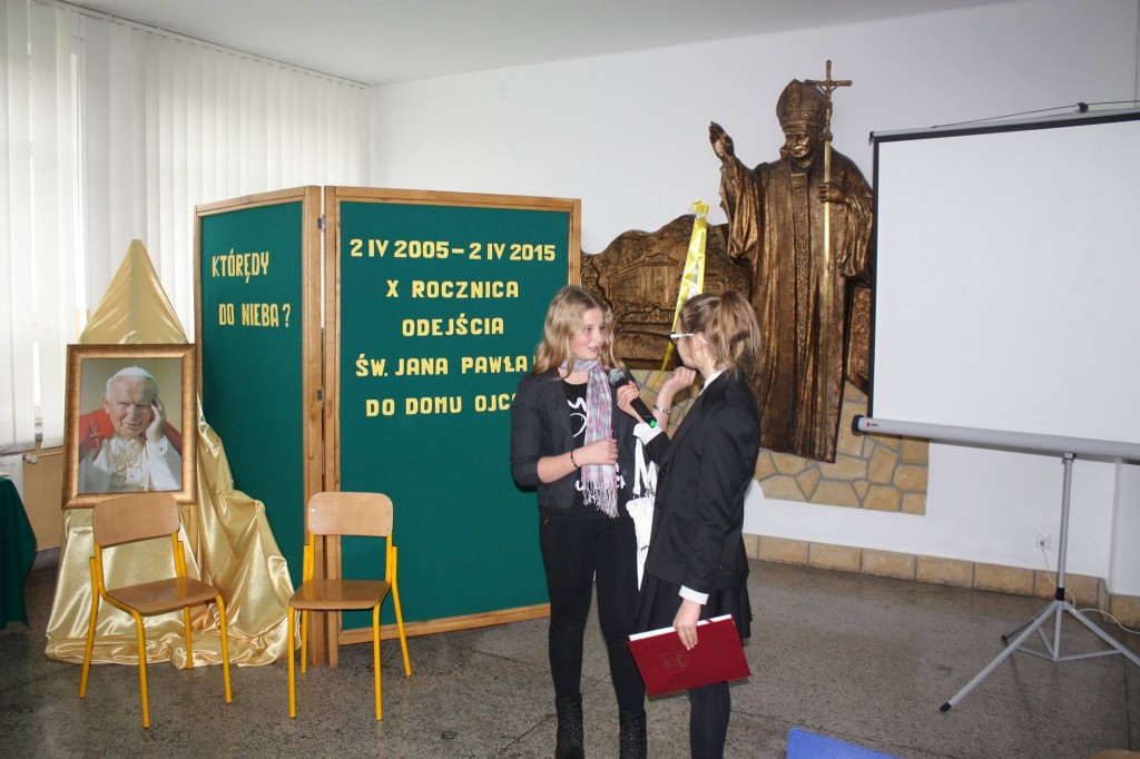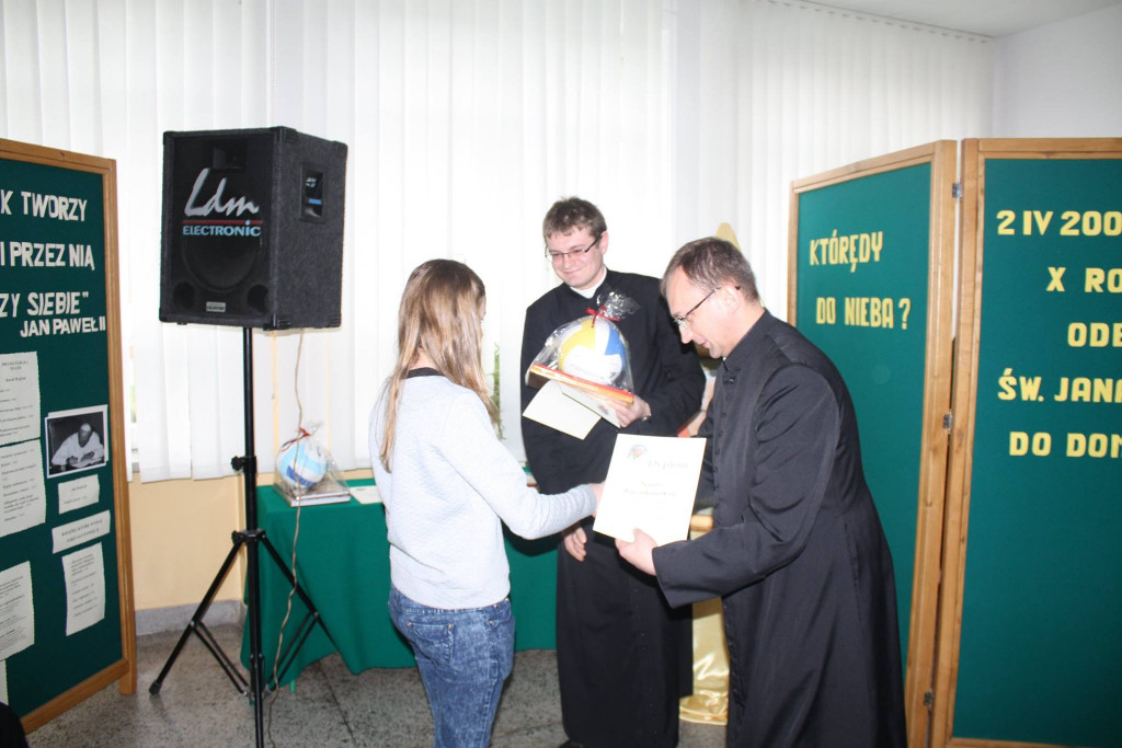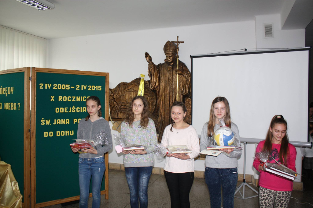 Rocznica śmierci Papieża stała się również okazją do zorganizowania konkursu wiedzy pt. „Którędy do nieba” poświęconego osobie wybitnego Rodaka. Uczniowie rywalizowali ze sobą w dwóch kategoriach wiekowych: kl. 4 – 6 szkoły podstawowej
