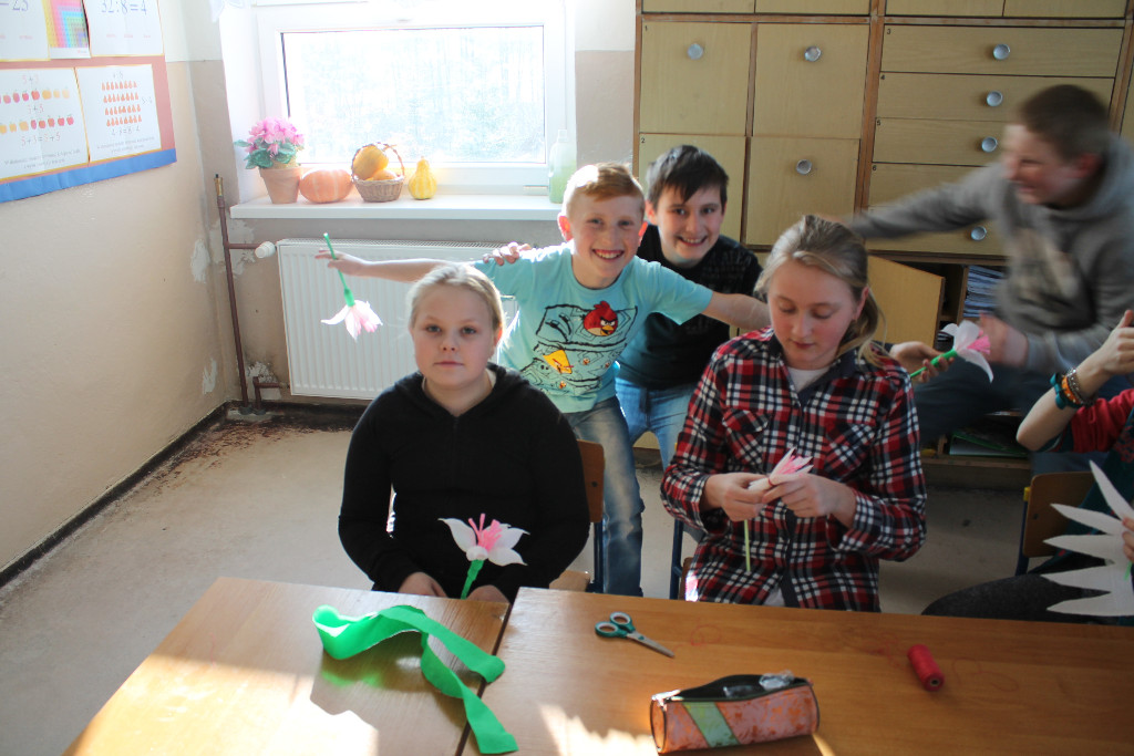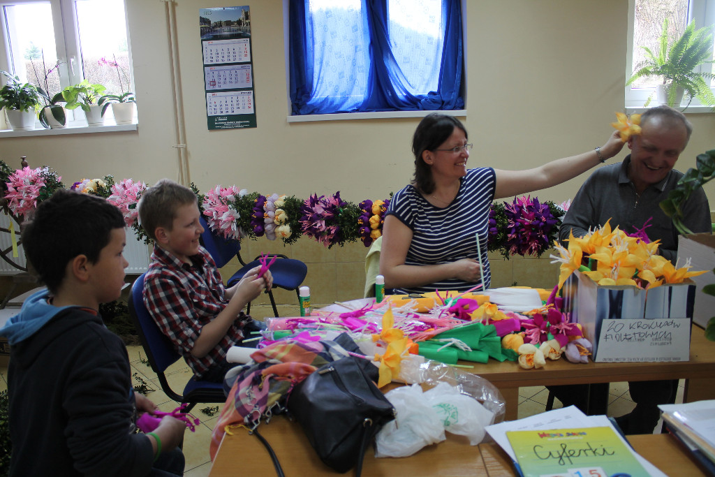Oficjalny serwisPo raz kolejny społeczność Nowego Rybia udowodniła, że razem można więcej. Z udziałem wielu osób została wykonana w Szkole Podstawowej im. Marii Dąbrowskiej w Nowym Rybiu Palma Wielkanocna. Intensywne prace nad jej przygotowaniem trwały około trzech miesięcy. Palma mierzyła osiem metrów i została udekorowana 499 ręcznie wykonanymi kwiatami . W „budowę Palmy” zaangażowali się przede wszystkim uczniowie, nauczyciele oraz obsługa szkoły, ale swój udział mieli również rodzice uczniów. Głównym pomysłodawcą była Jolanta Janas – nauczyciel plastyki w tutejszej szkole, która zorganizowała swoistego rodzaju warsztaty artystyczne dla dużych i małych. Wszyscy chętni mieli możliwość nauczyć się wykonywać piękne, barwne kwiaty z krepiny i poznać zasady tworzenia zgodnej z tradycją ludową Palmy. Z prac powstał mini reportaż, wykonany przez członków naszego koła dziennikarskiego.
