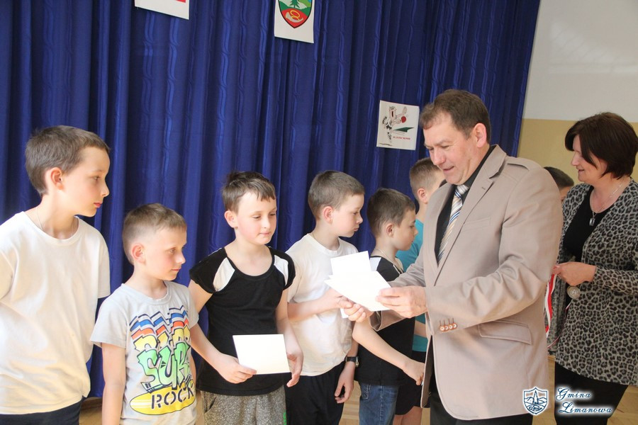Uczestników obserwowali bacznie: Dyrektor Szkoły Podstawowej w Młynnem - Bożena Golonka oraz Z-ca Wójta Gminy Limanowa - Marian Mąka.