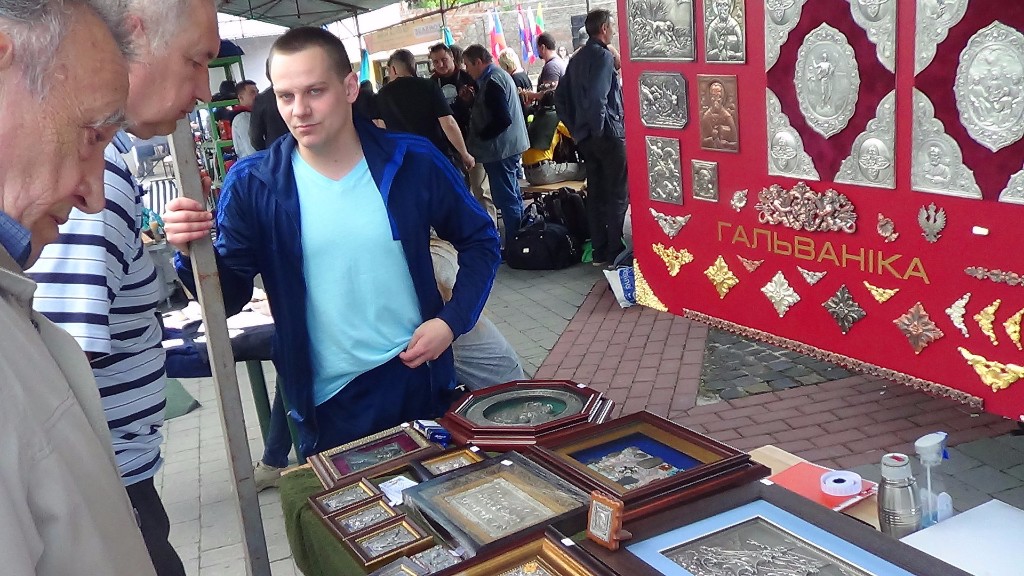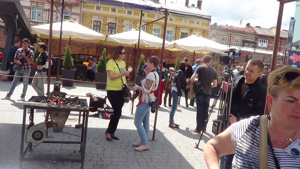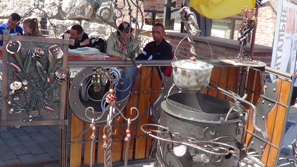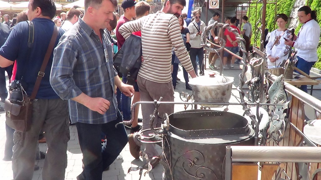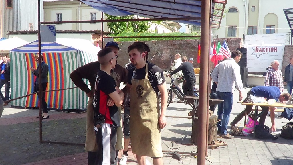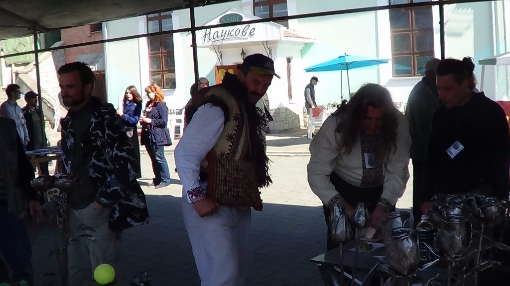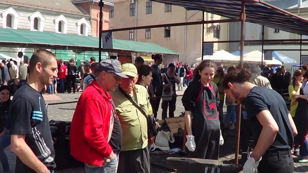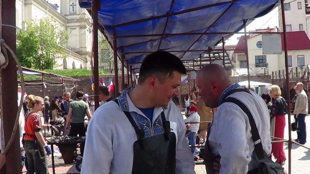 Stoisko „naszych” kowali cieszyło się dużym zainteresowaniem, a uwagę uczestników skupiały nie tylko dzieła, którzy twórcy z Pisarzowej przywieźli na Ukrainę, ale także fachowa praca na miejscu jaką ubrani w białych góralskich strojach i czarnych kapeluszach prezentowali na miejscu.