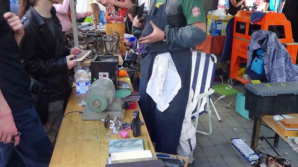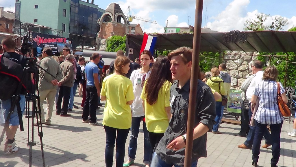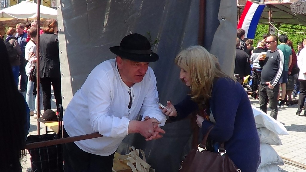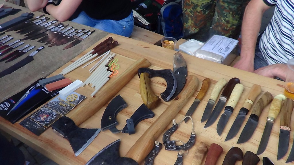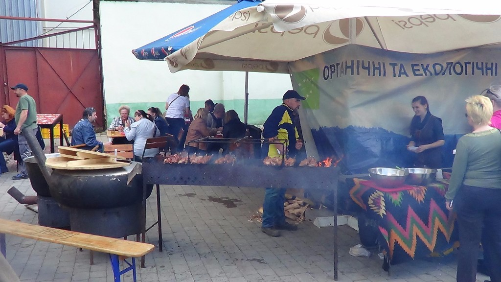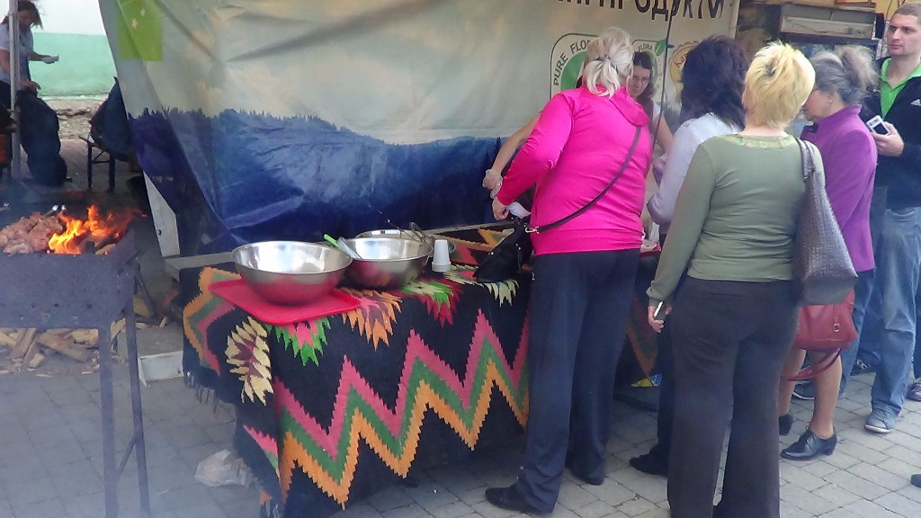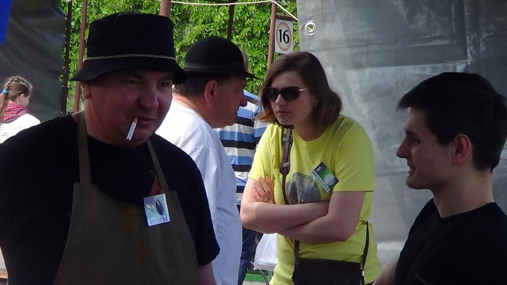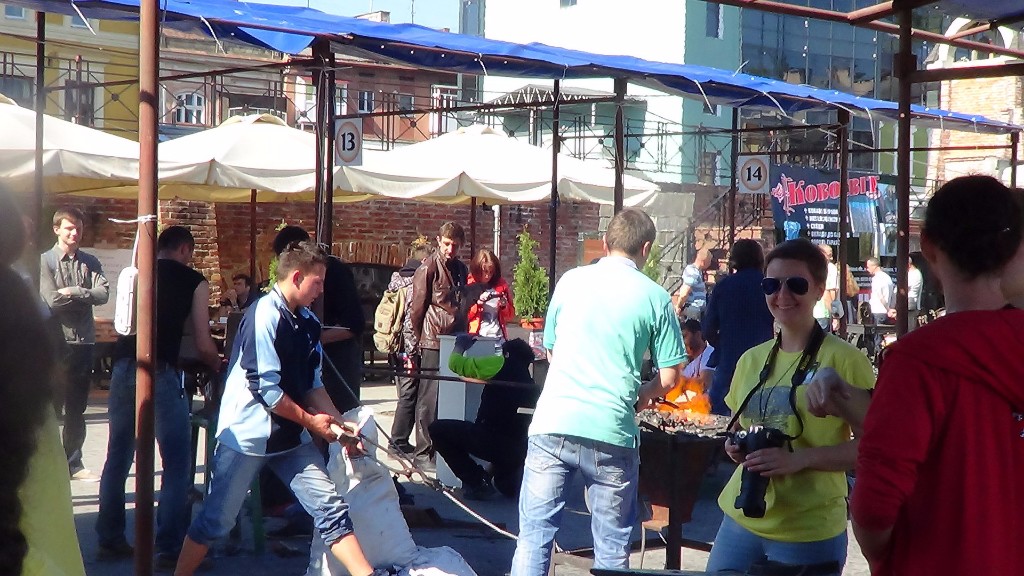 Stoisko „naszych” kowali cieszyło się dużym zainteresowaniem, a uwagę uczestników skupiały nie tylko dzieła, którzy twórcy z Pisarzowej przywieźli na Ukrainę, ale także fachowa praca na miejscu jaką ubrani w białych góralskich strojach i czarnych kapeluszach prezentowali na miejscu.