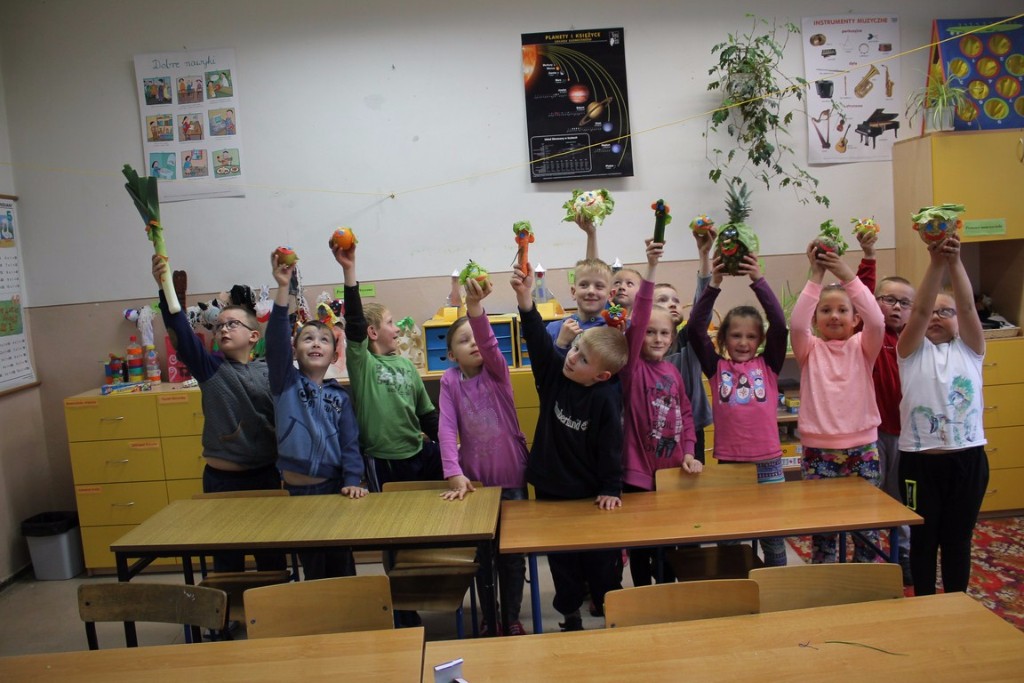 Działaniem, które bardzo zjednoczyło rywalizujące drużyny było wykonanie przez uczniów klas młodszych zadań w ramach projektu Owoce w szkole. Powstały w ten sposób kosze pełne owoców, wesołe warzywa , apetyczne warzywne talerze oraz owocowe kukiełki. Wiele emocji dostarczył wszystkim uczestnikom mecz piłki nożnej dziewcząt i chłopców z klas VI.