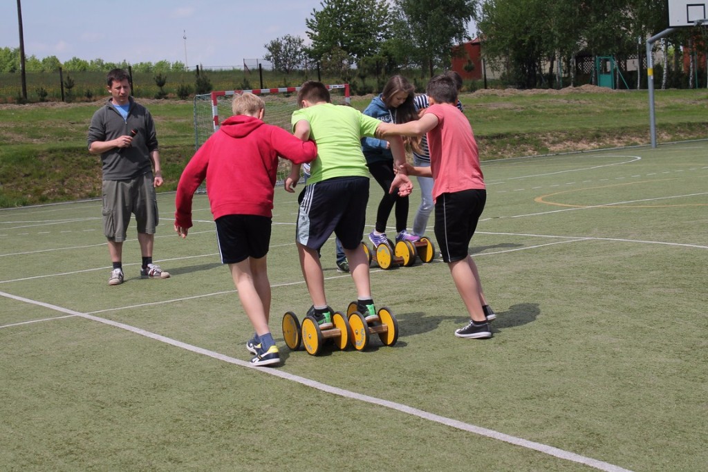 Wszystkie dyscypliny specjalnie na ten dzień przygotowali Grzegorz Małojło oraz Jadwiga Kowalczyk. Nad bezpieczeństwem dzieci czuwali nauczyciele pracujący w rywalizujących ze sobą placówkach, którzy również aktywnie włączyli się w przebieg zawodów i z ogromnym zaangażowaniem dopingowali swoich wychowanków. Dzieci i uczniowie wzięli udział w wielu ciekawych konkurencjach: mini rowerki, rowerki jednokołowe, biegi w workach, biegi z maczugą, przeciąganie liny, rzucanie obręczami, zawody na szczudłach, wyścigi na rolkach WAWAGO. Wszyscy, którzy nie brali czynnego udziału w danej konkurencji, aktywnie kibicowali swoim faworytom i głośnymi okrzykami dodawali im otuchy w walce o puchar dla szkoły. Ponadto zawodnicy sprawdzili swoje umiejętności taneczne na specjalnych matach i obejrzeli pokaz strażacki przygotowany przez OSP Nowe Rybie.