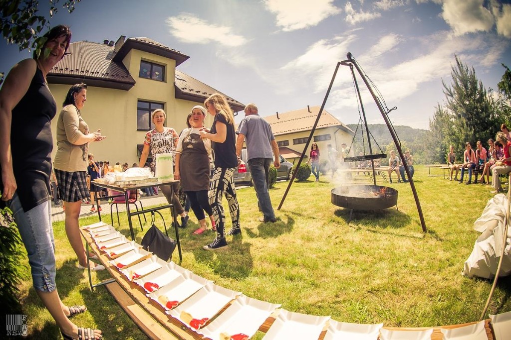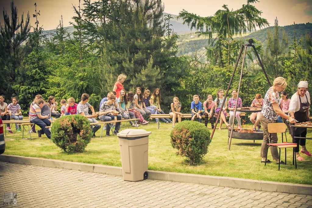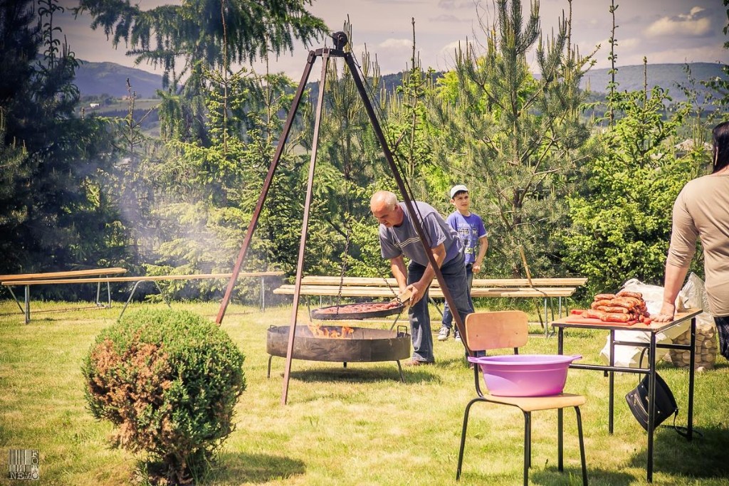 Następną atrakcją dla uczniów były kiełbaski. Ich pieczeniem zajęli się rodzice, co szczególnie należy docenić, gdyż grill umieszczony był w pełnym słońcu. Po wspólnym posiłku uczniowie podzielili się na dwie grupy. Jedna przystąpiła do rywalizacji w konkursie plastycznym: „Dzień Dziecka w oczach dziecka”, a druga wybrała rozgrywki w piłkę nożną. Obydwie grupy bawiły się znakomicie.