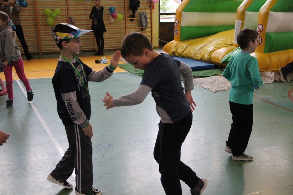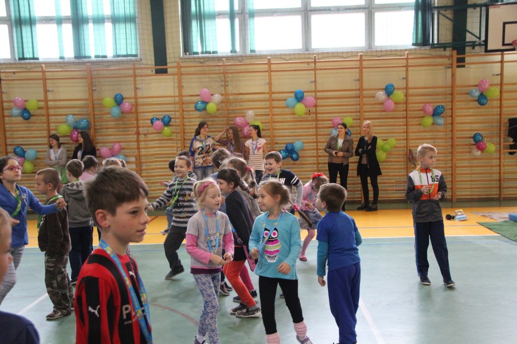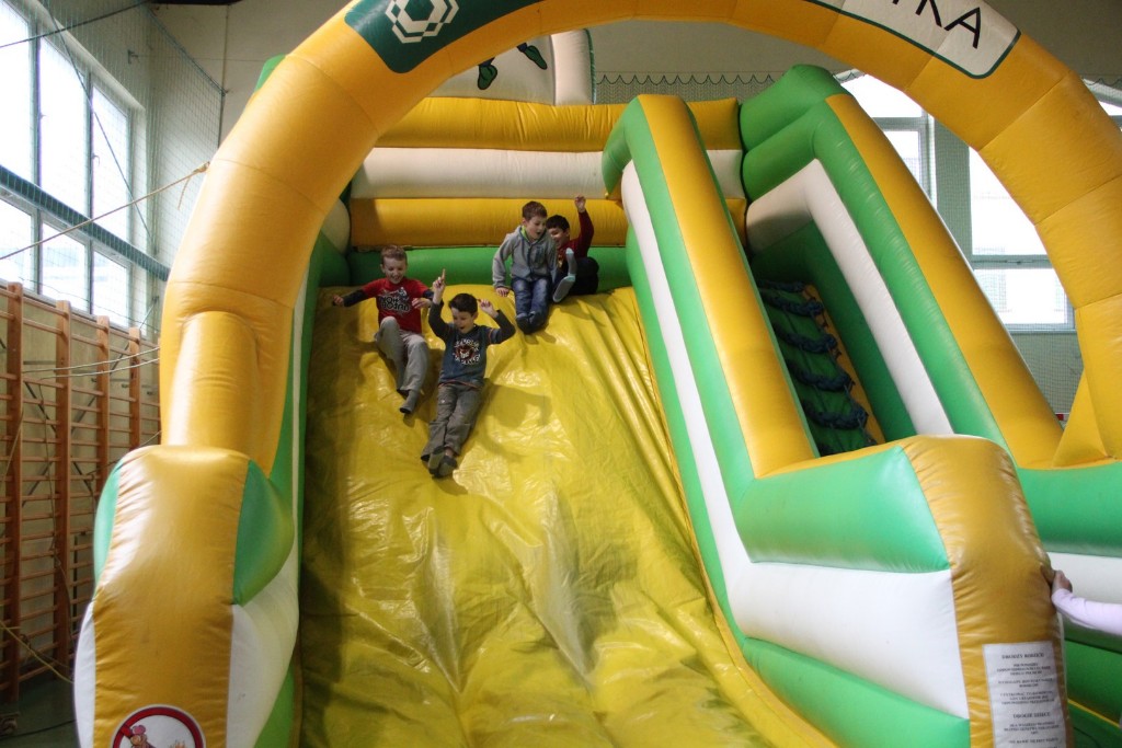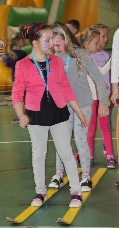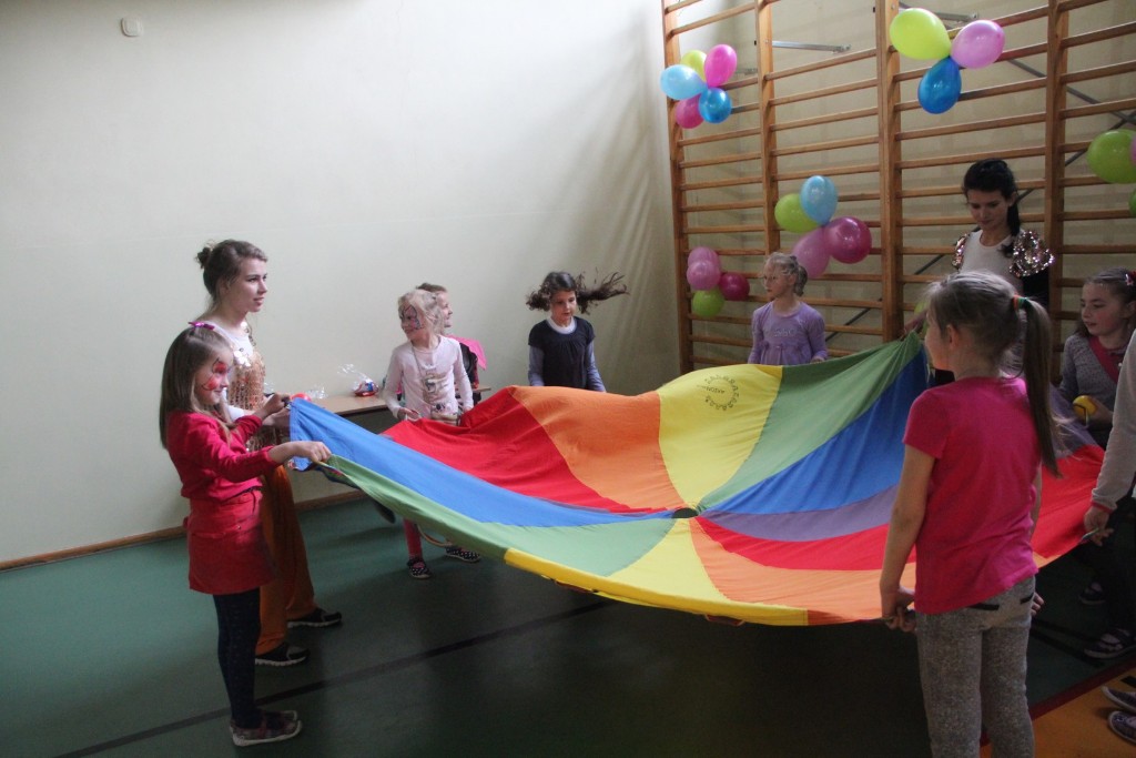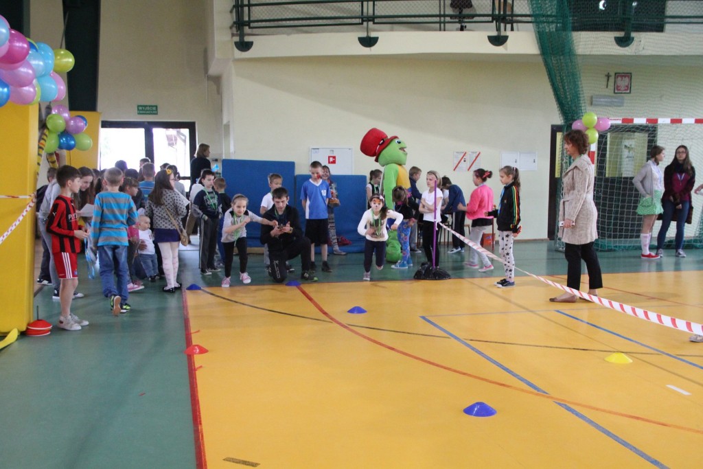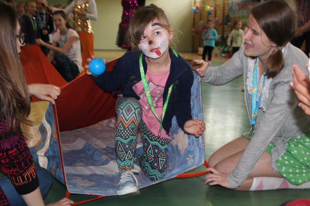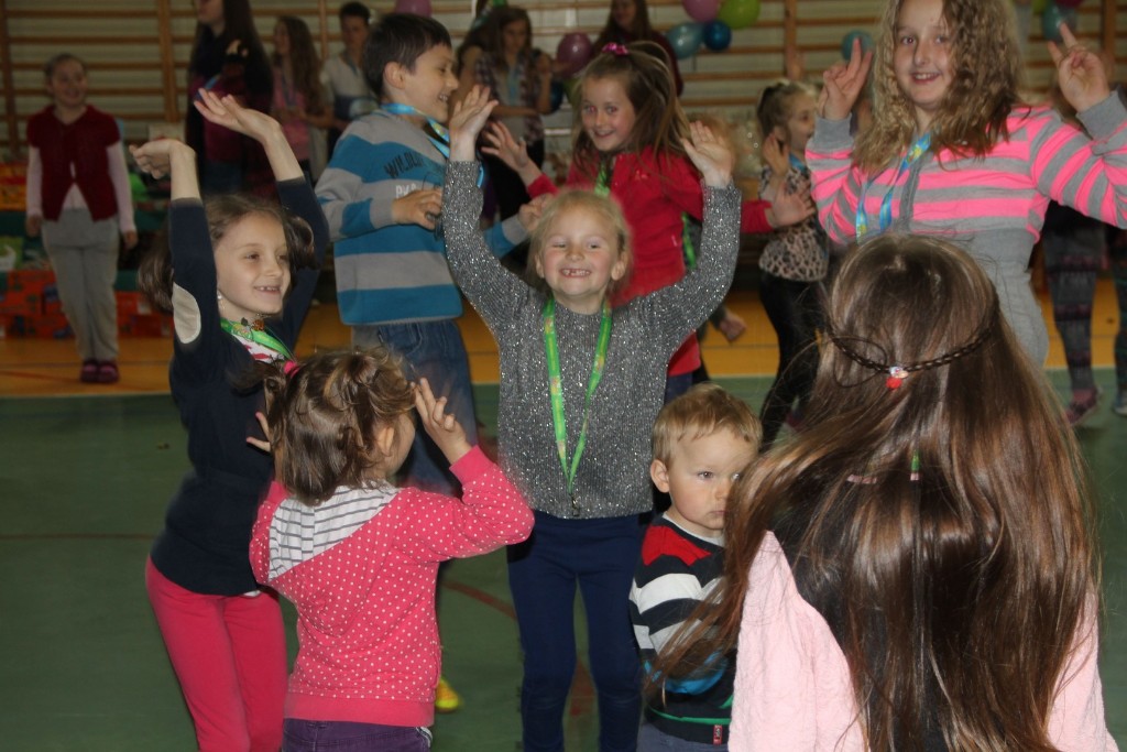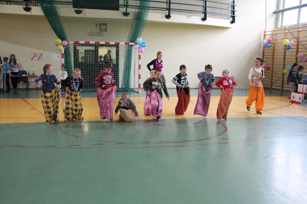 Na parkiecie hali sportowej już od godziny 9 – tej trwała odlotowa impreza prowadzona przez animatorów. Dzieci tańczyły w rytm znanych piosenek. Mogły do woli poszaleć na ogromnej, dmuchanej zjeżdżalni. Każdy mógł skorzystać z usługi: malowanie twarzy, co sprawiło, że zrobiło się nadzwyczaj kolorowo. Wspaniałą atrakcją były również baloniki, które zgodnie z życzeniem dzieci przekształcały się m.in.: w zwierzątka, rośliny – fantazji nie brakowało. Ponadto na specjalnie życzenie najmłodszych uczestników imprezy, szkolna grupa cheerleaders zaprezentowała pokaz swoich umiejętności.