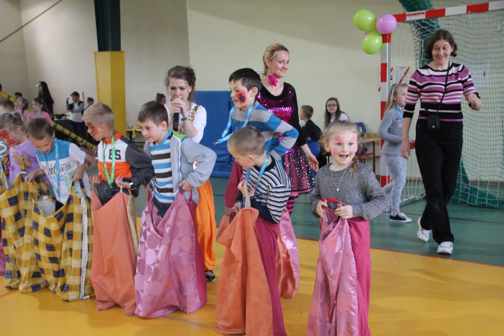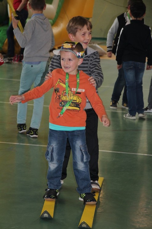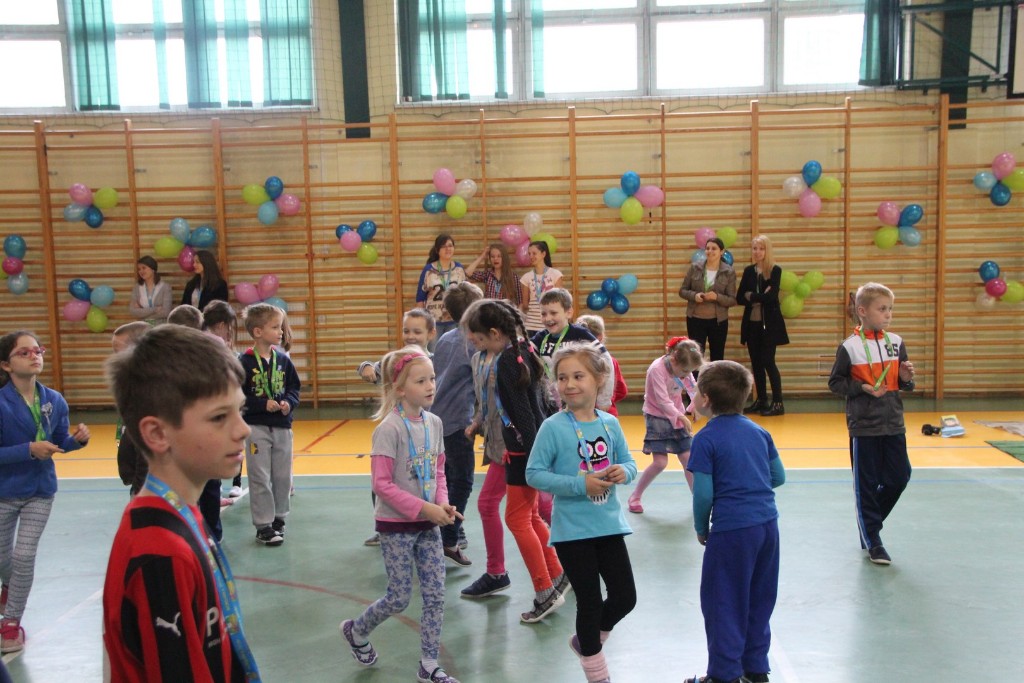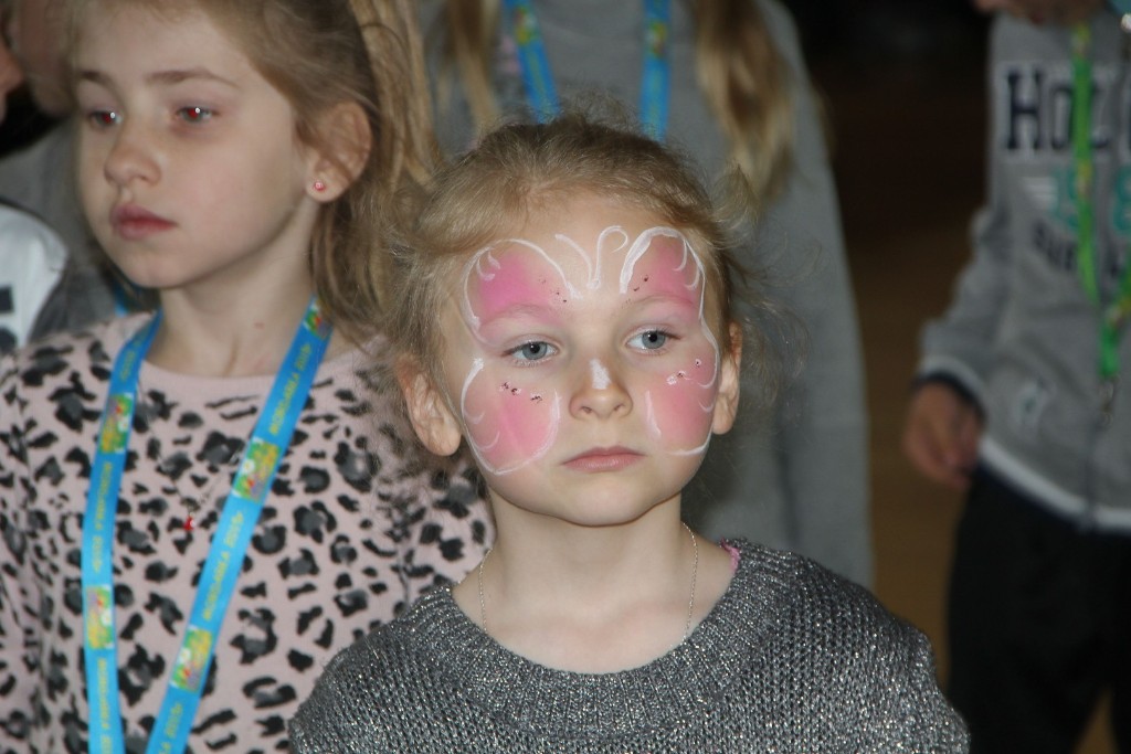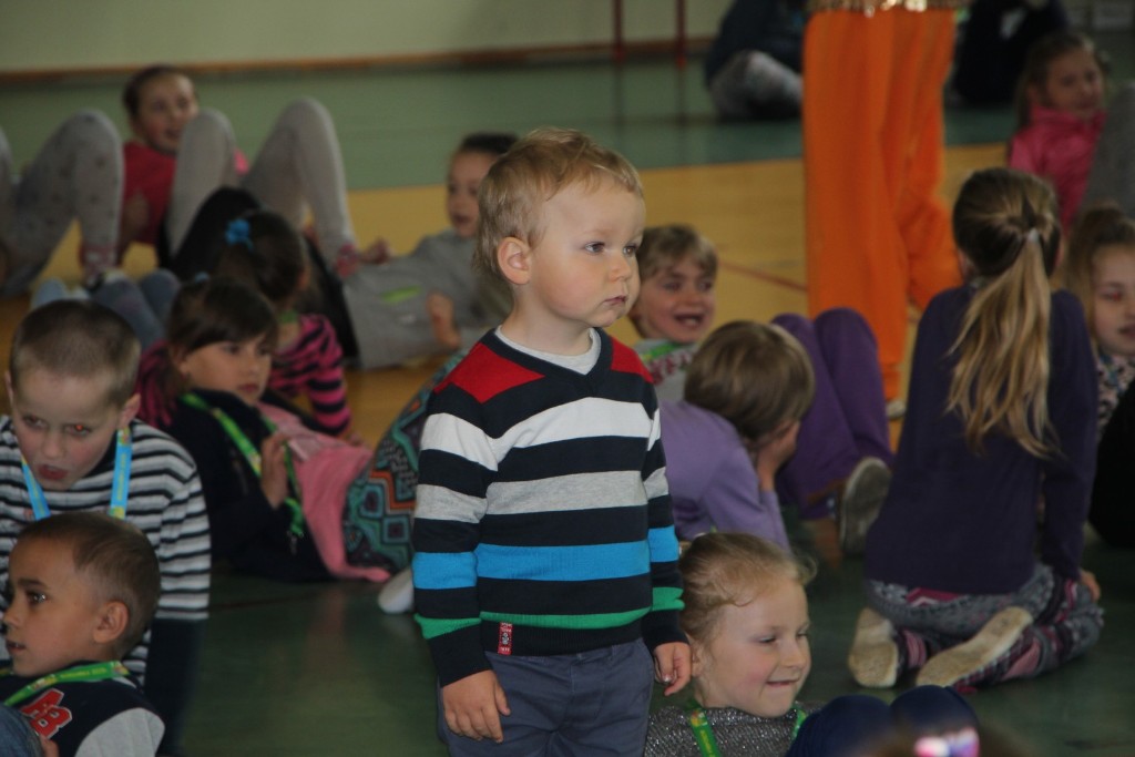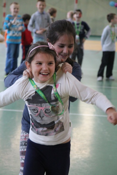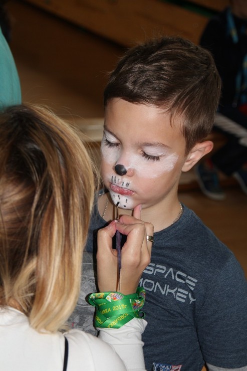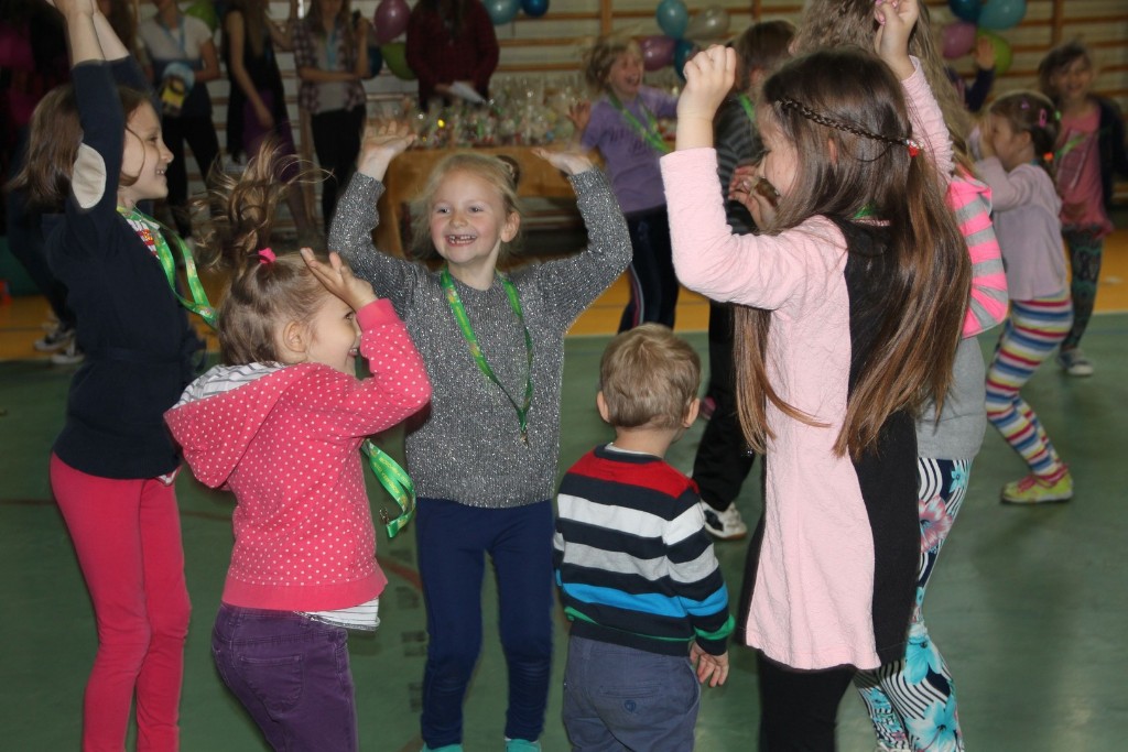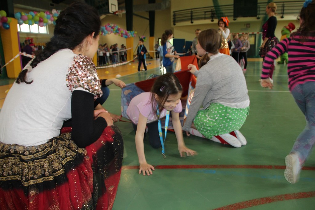 Na parkiecie hali sportowej już od godziny 9 – tej trwała odlotowa impreza prowadzona przez animatorów. Dzieci tańczyły w rytm znanych piosenek. Mogły do woli poszaleć na ogromnej, dmuchanej zjeżdżalni. Każdy mógł skorzystać z usługi: malowanie twarzy, co sprawiło, że zrobiło się nadzwyczaj kolorowo. Wspaniałą atrakcją były również baloniki, które zgodnie z życzeniem dzieci przekształcały się m.in.: w zwierzątka, rośliny – fantazji nie brakowało. Ponadto na specjalnie życzenie najmłodszych uczestników imprezy, szkolna grupa cheerleaders zaprezentowała pokaz swoich umiejętności.