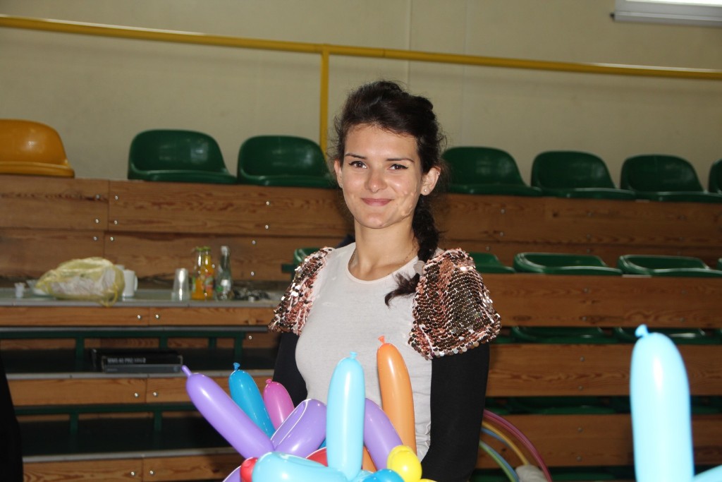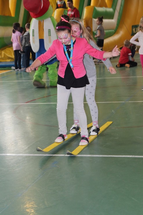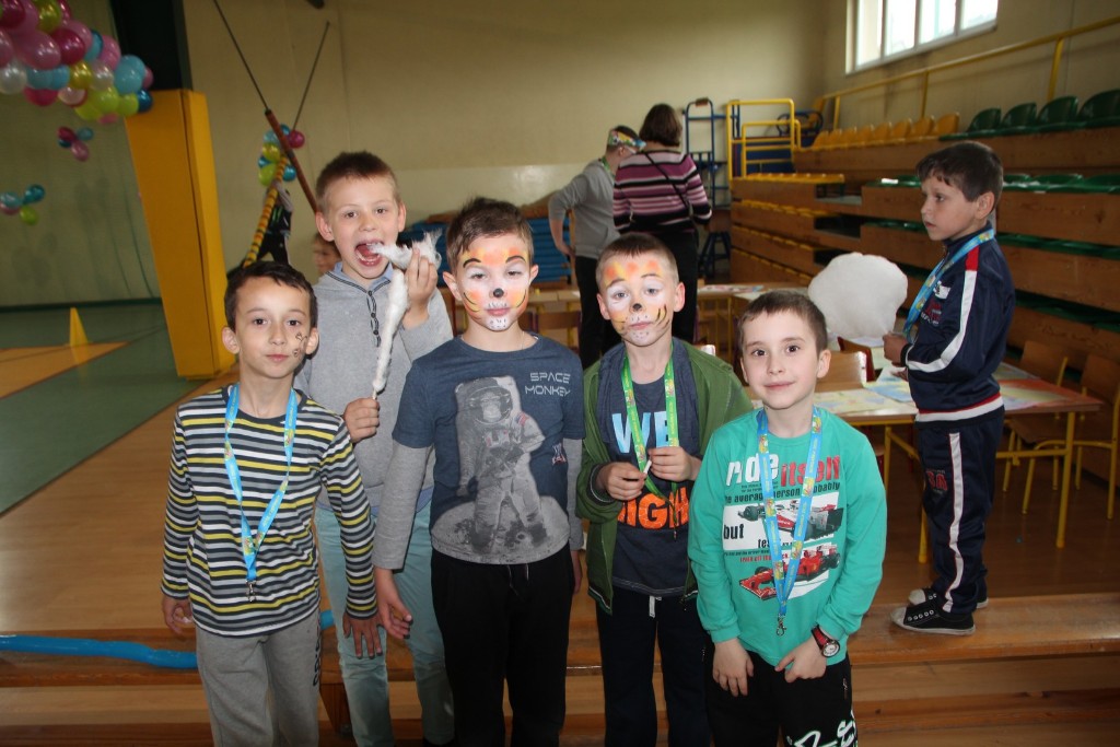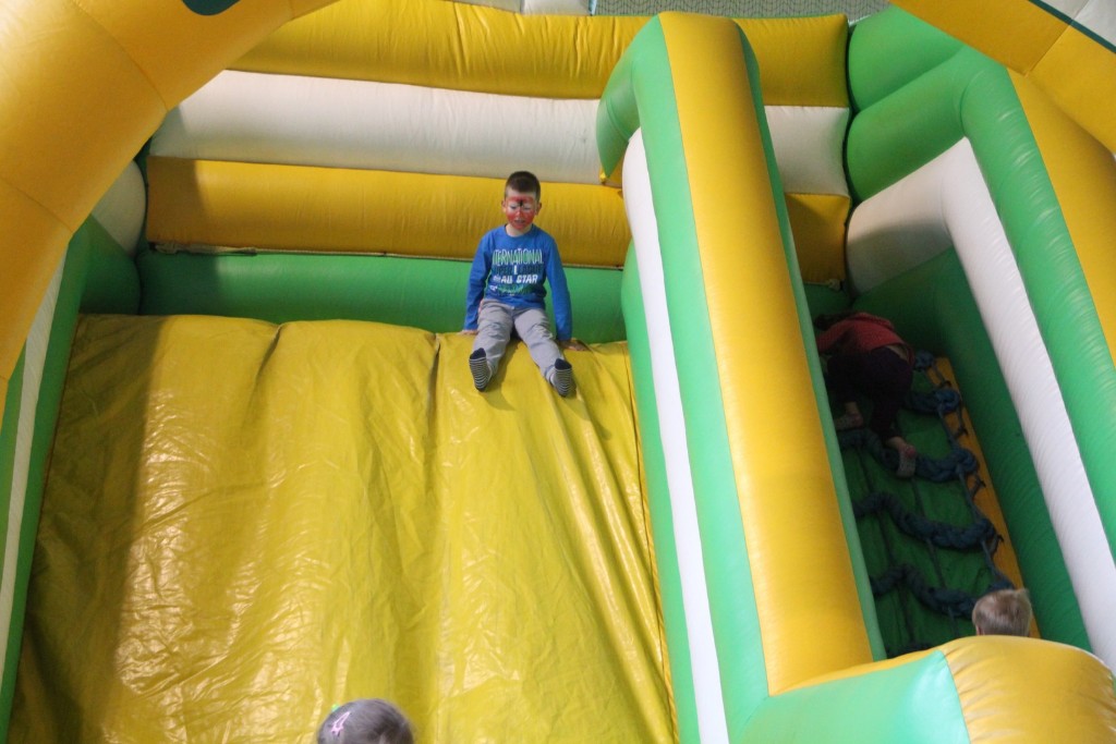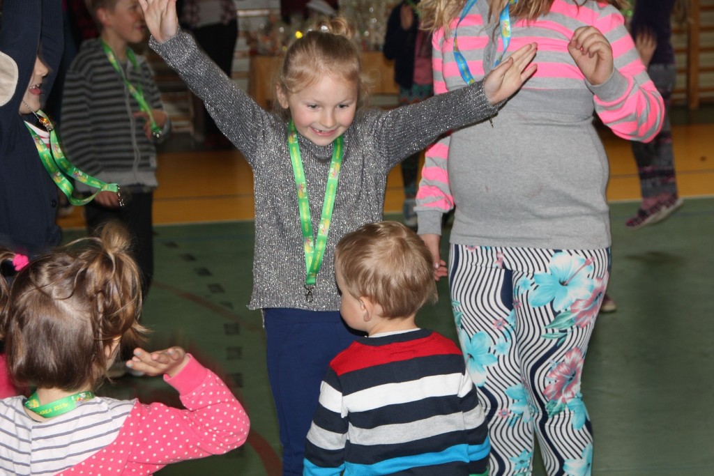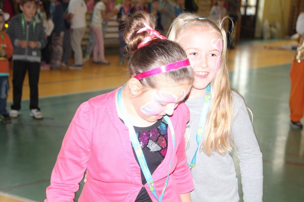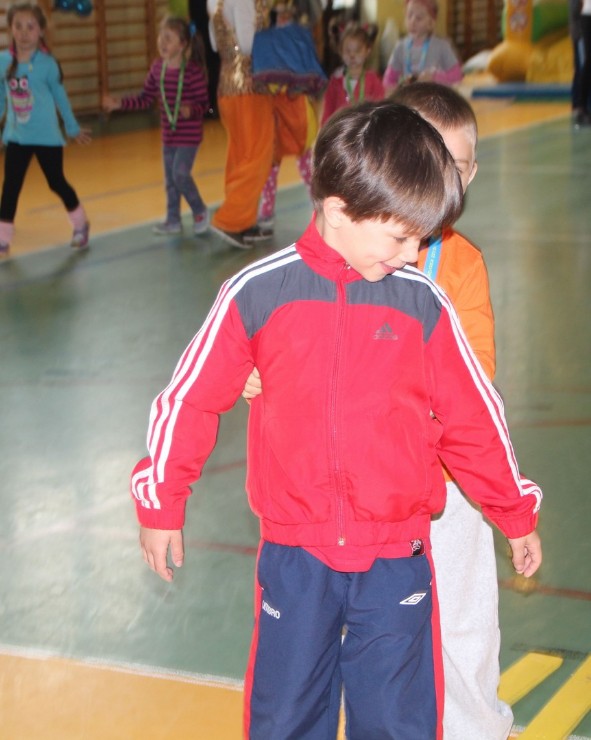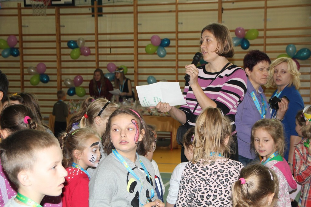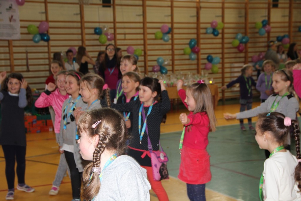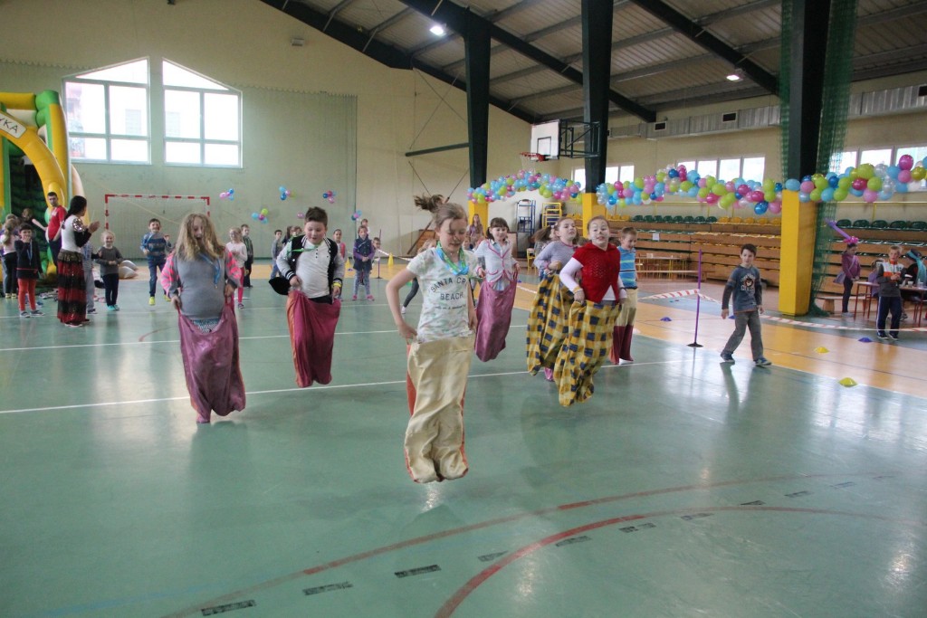 Na parkiecie hali sportowej już od godziny 9 – tej trwała odlotowa impreza prowadzona przez animatorów. Dzieci tańczyły w rytm znanych piosenek. Mogły do woli poszaleć na ogromnej, dmuchanej zjeżdżalni. Każdy mógł skorzystać z usługi: malowanie twarzy, co sprawiło, że zrobiło się nadzwyczaj kolorowo. Wspaniałą atrakcją były również baloniki, które zgodnie z życzeniem dzieci przekształcały się m.in.: w zwierzątka, rośliny – fantazji nie brakowało. Ponadto na specjalnie życzenie najmłodszych uczestników imprezy, szkolna grupa cheerleaders zaprezentowała pokaz swoich umiejętności.