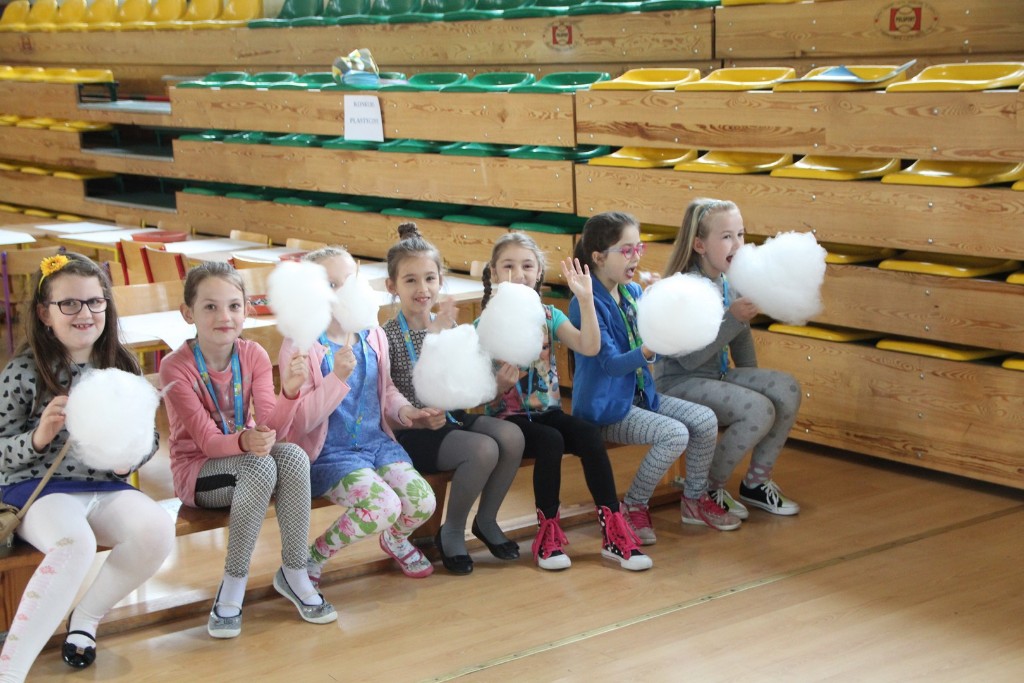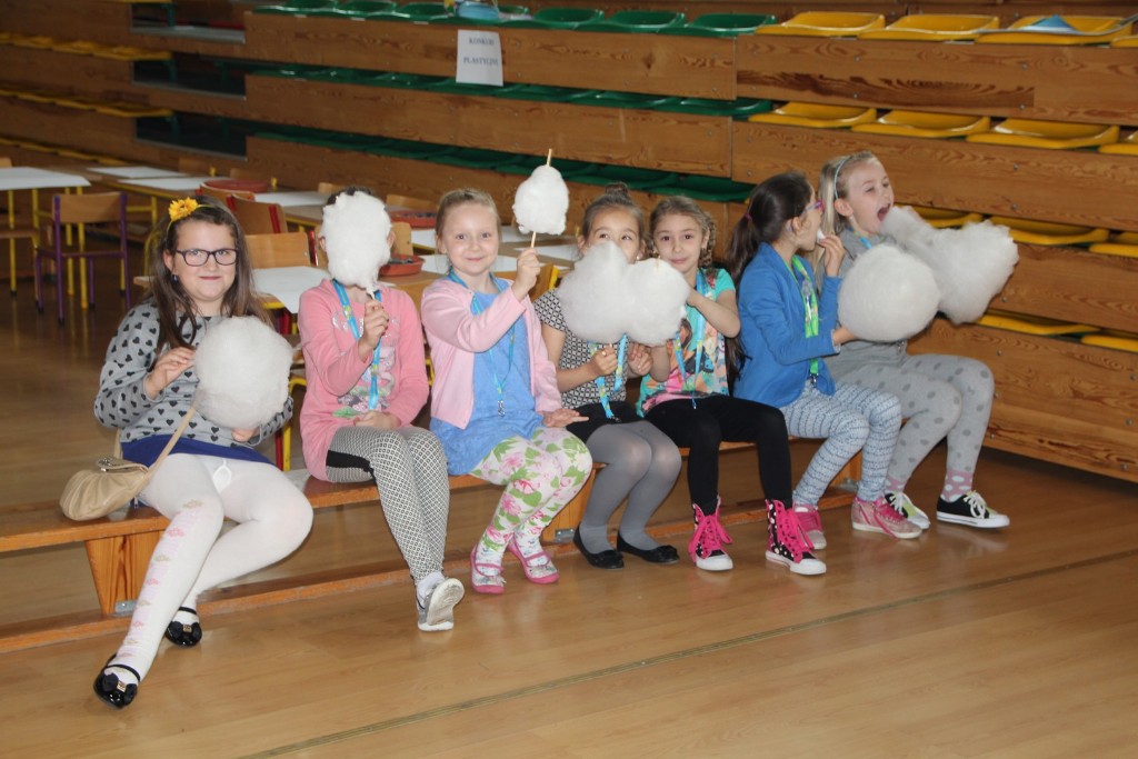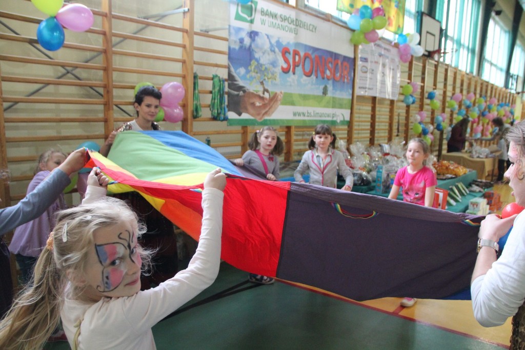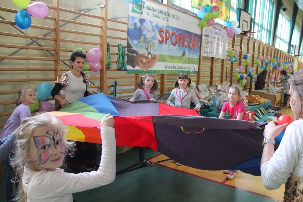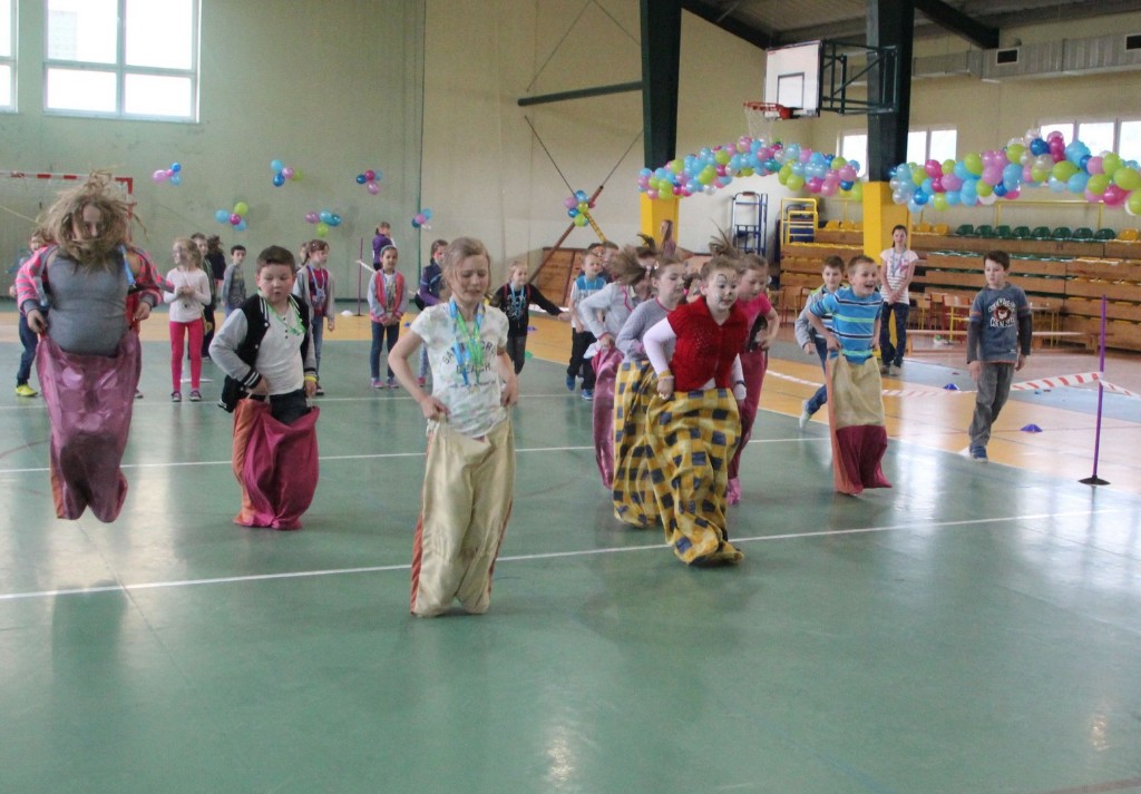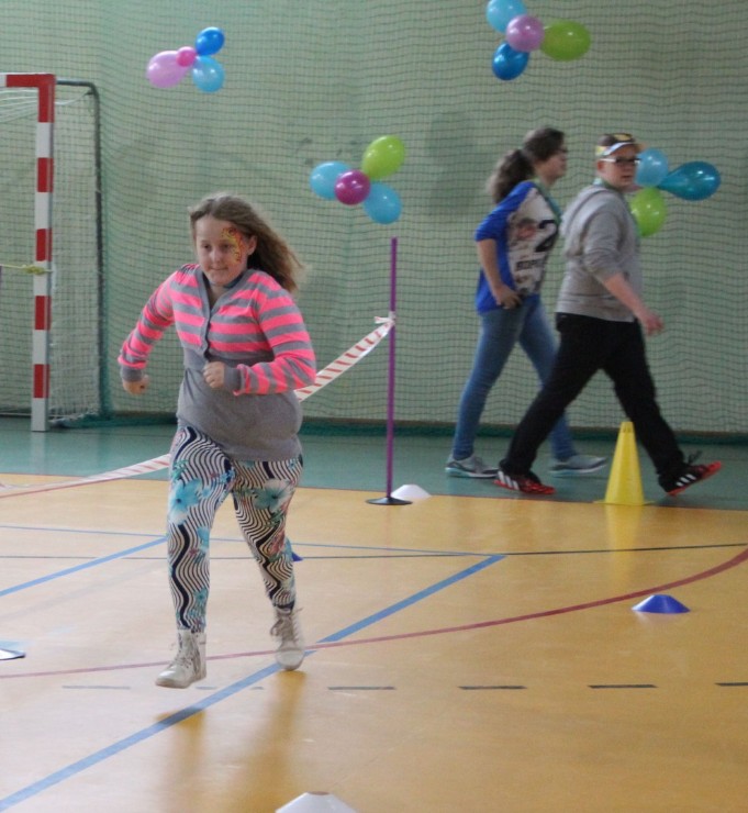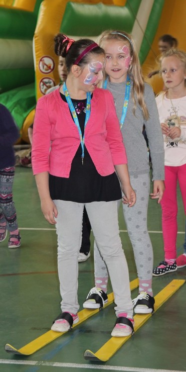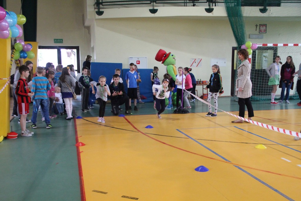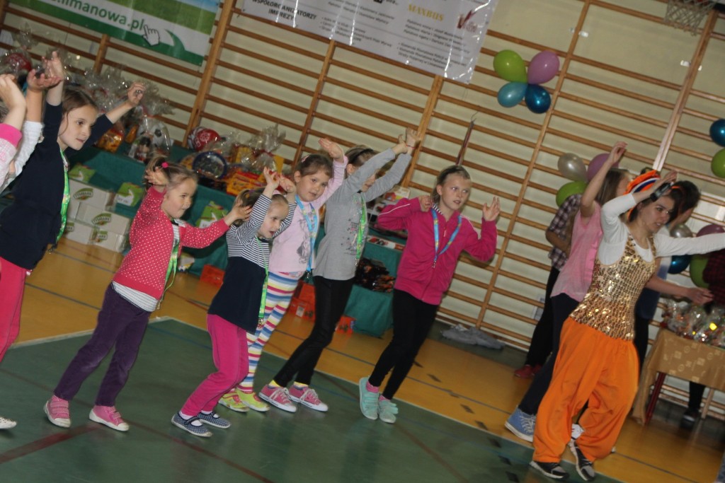 Na parkiecie hali sportowej już od godziny 9 – tej trwała odlotowa impreza prowadzona przez animatorów. Dzieci tańczyły w rytm znanych piosenek. Mogły do woli poszaleć na ogromnej, dmuchanej zjeżdżalni. Każdy mógł skorzystać z usługi: malowanie twarzy, co sprawiło, że zrobiło się nadzwyczaj kolorowo. Wspaniałą atrakcją były również baloniki, które zgodnie z życzeniem dzieci przekształcały się m.in.: w zwierzątka, rośliny – fantazji nie brakowało. Ponadto na specjalnie życzenie najmłodszych uczestników imprezy, szkolna grupa cheerleaders zaprezentowała pokaz swoich umiejętności.
