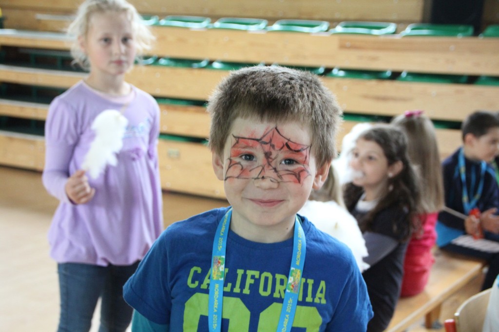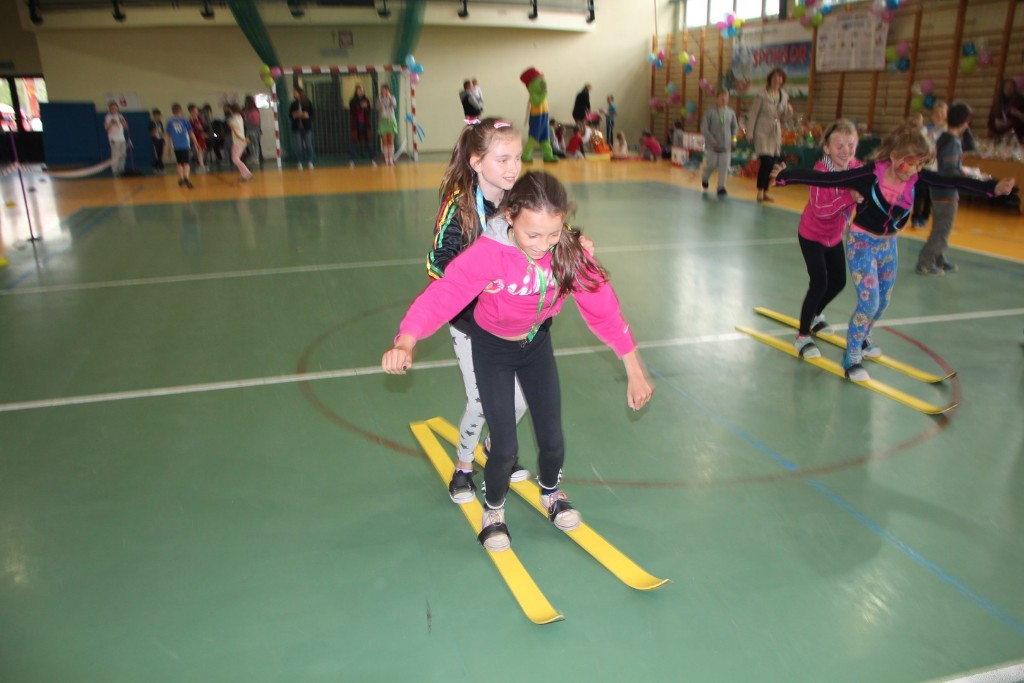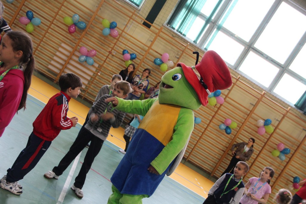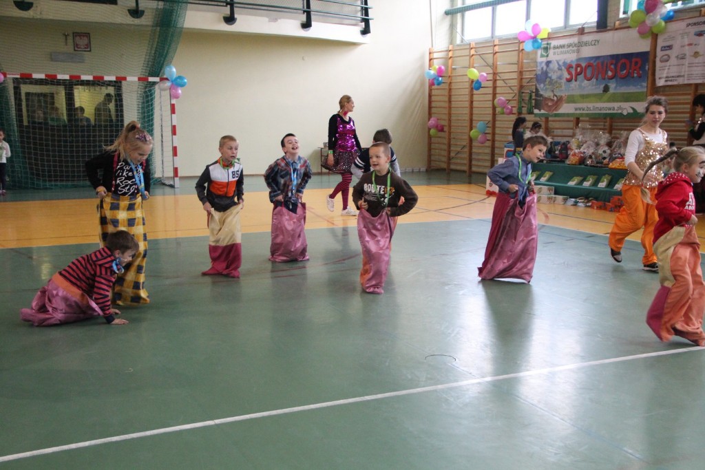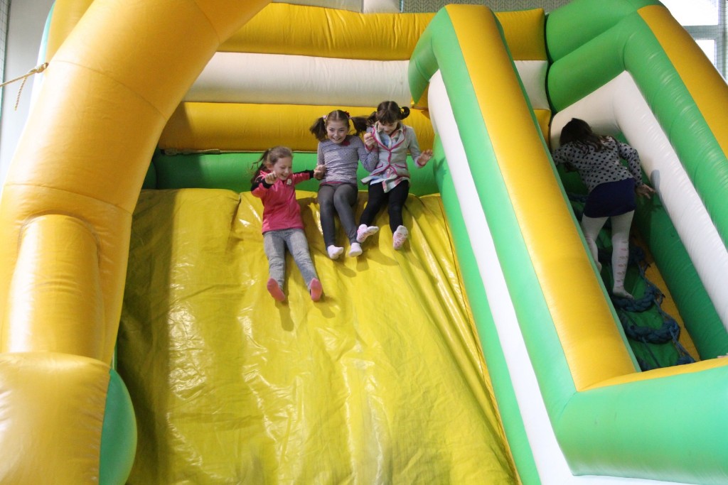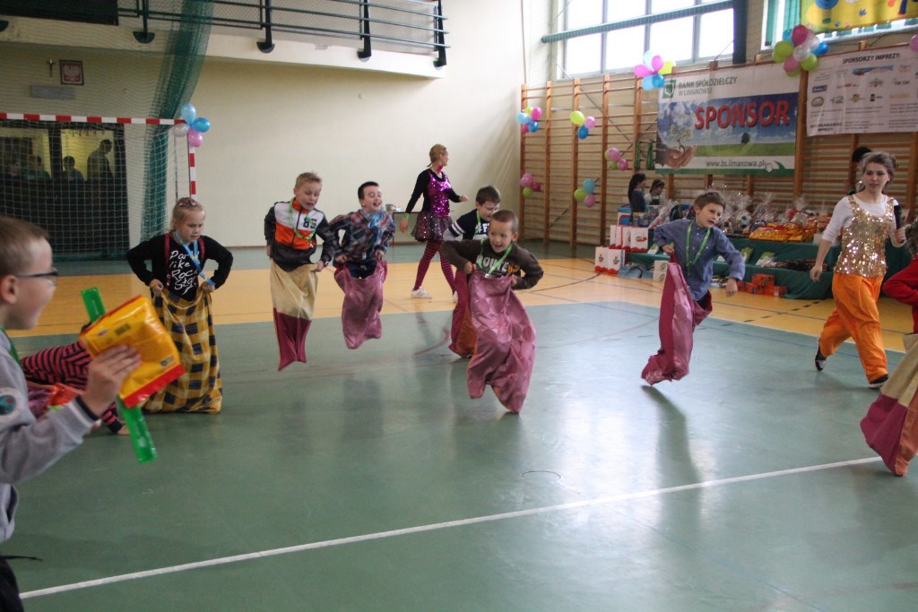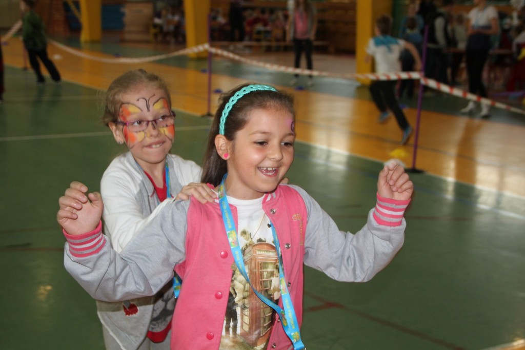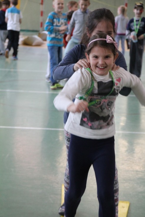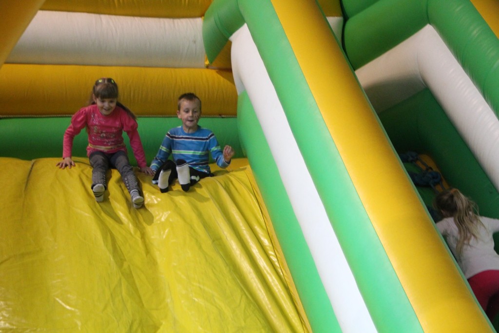 Na parkiecie hali sportowej już od godziny 9 – tej trwała odlotowa impreza prowadzona przez animatorów. Dzieci tańczyły w rytm znanych piosenek. Mogły do woli poszaleć na ogromnej, dmuchanej zjeżdżalni. Każdy mógł skorzystać z usługi: malowanie twarzy, co sprawiło, że zrobiło się nadzwyczaj kolorowo. Wspaniałą atrakcją były również baloniki, które zgodnie z życzeniem dzieci przekształcały się m.in.: w zwierzątka, rośliny – fantazji nie brakowało. Ponadto na specjalnie życzenie najmłodszych uczestników imprezy, szkolna grupa cheerleaders zaprezentowała pokaz swoich umiejętności.