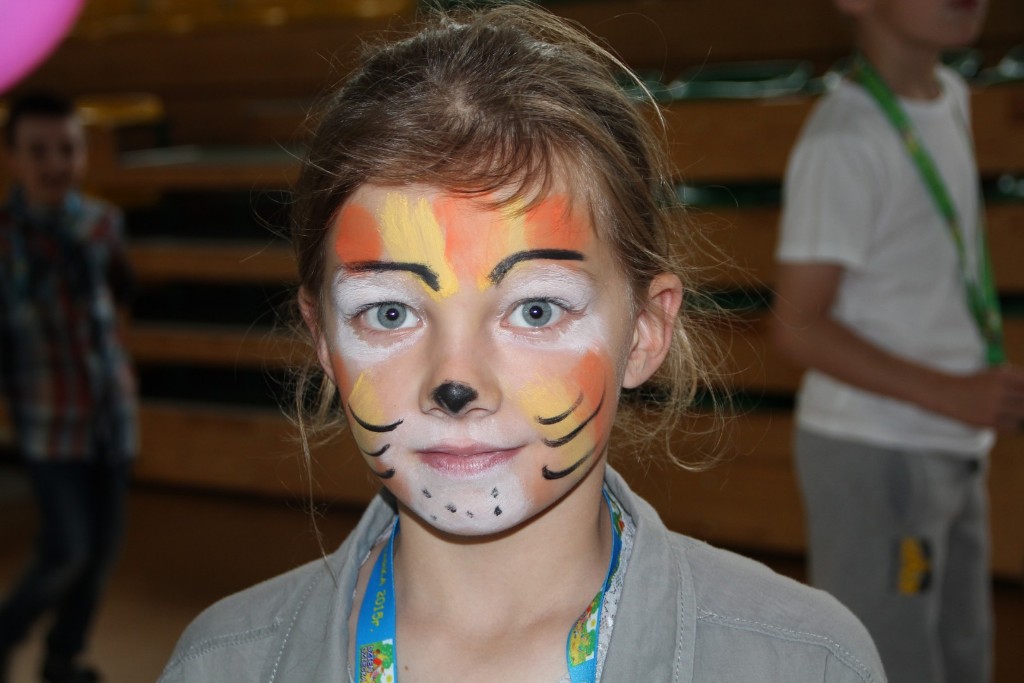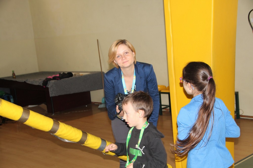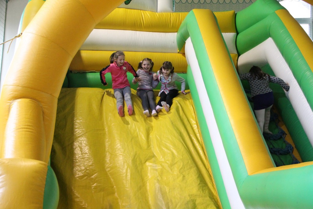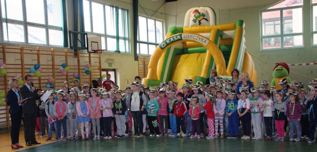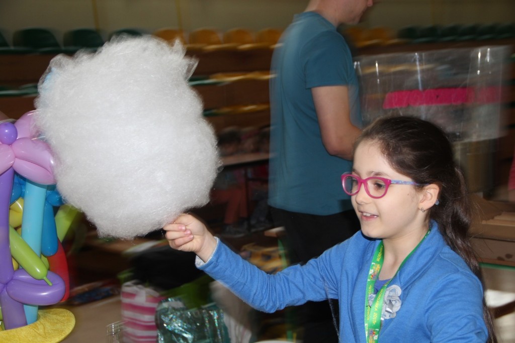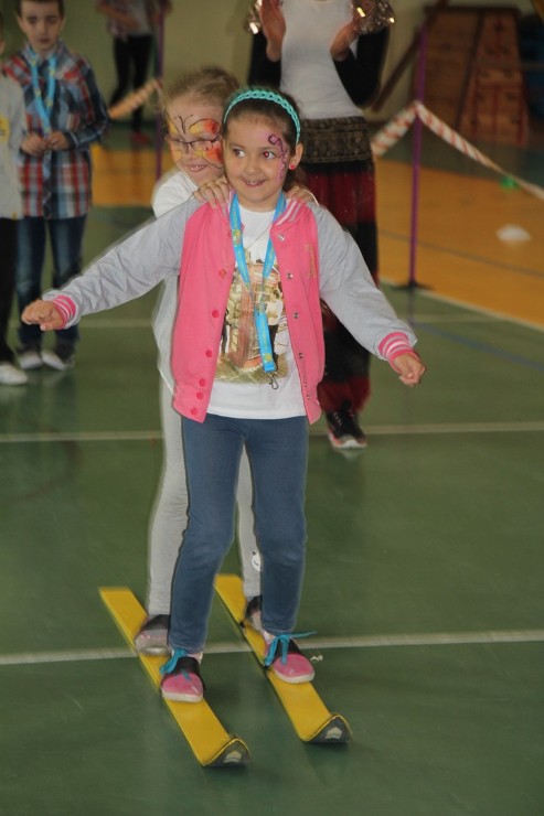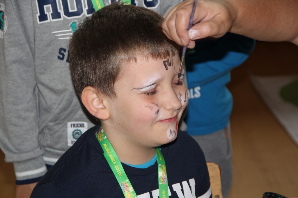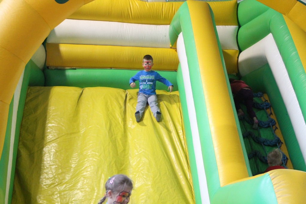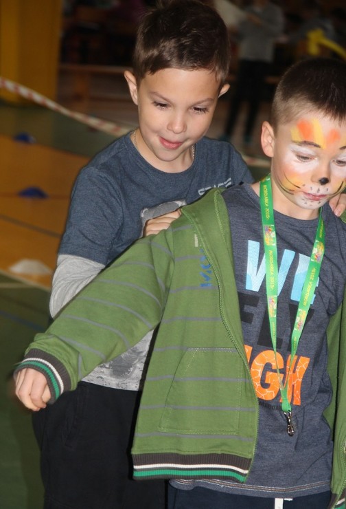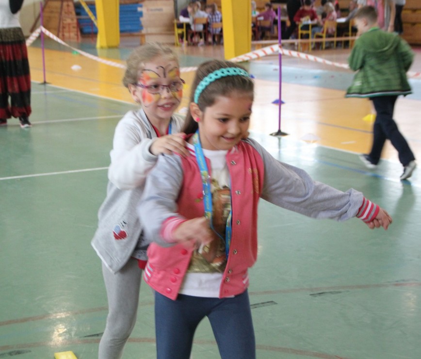 Na parkiecie hali sportowej już od godziny 9 – tej trwała odlotowa impreza prowadzona przez animatorów. Dzieci tańczyły w rytm znanych piosenek. Mogły do woli poszaleć na ogromnej, dmuchanej zjeżdżalni. Każdy mógł skorzystać z usługi: malowanie twarzy, co sprawiło, że zrobiło się nadzwyczaj kolorowo. Wspaniałą atrakcją były również baloniki, które zgodnie z życzeniem dzieci przekształcały się m.in.: w zwierzątka, rośliny – fantazji nie brakowało. Ponadto na specjalnie życzenie najmłodszych uczestników imprezy, szkolna grupa cheerleaders zaprezentowała pokaz swoich umiejętności.